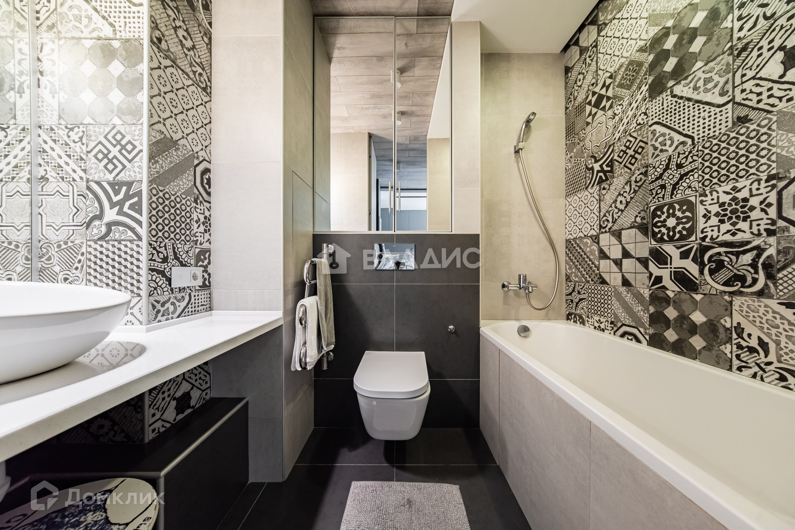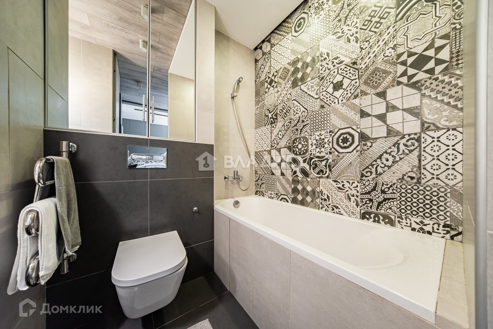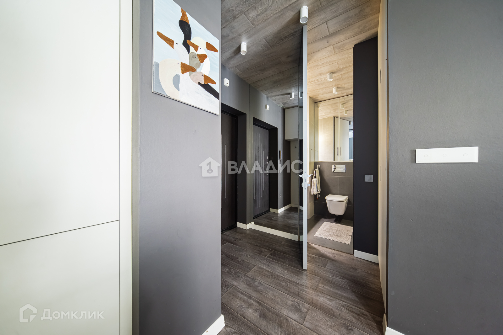 + Главная фишка - ЗЕРКАЛЬНЫЕ ДВЕРИ в пол, вход в ванную комнату.