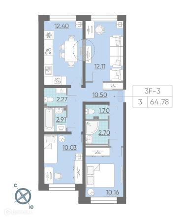 Общая площадь 63.4 м2