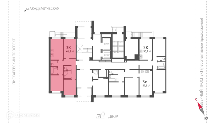 3-комнатная квартира, 63.4 м2, этаж 1 / 13, на продажу в Санкт-Петербурге, Северный проспект, 123к1