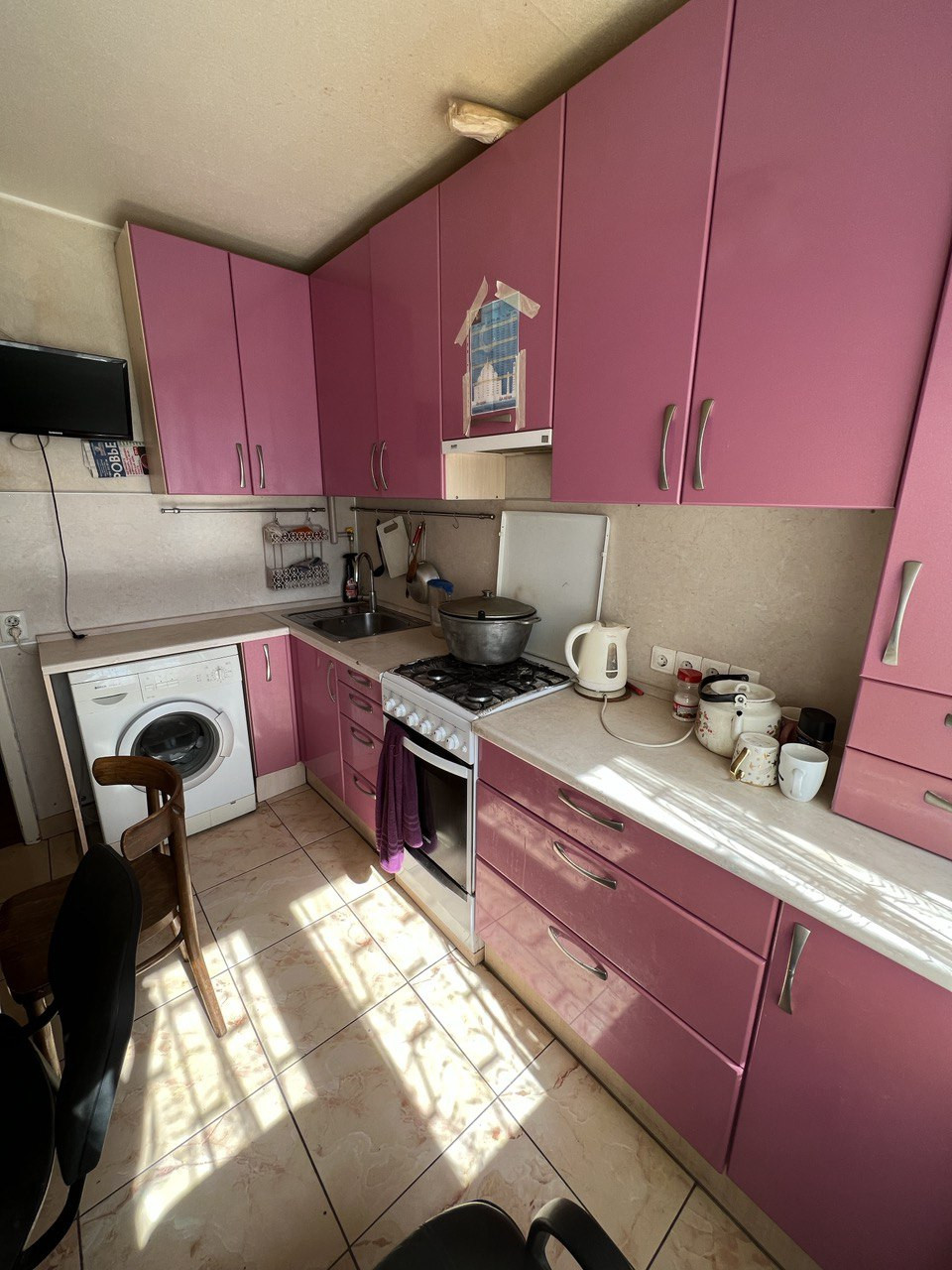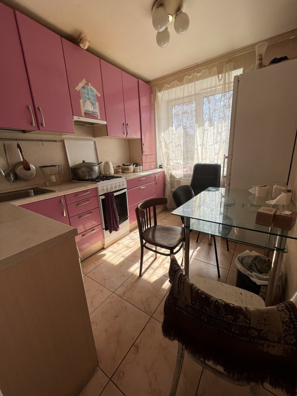 Ремонт на кухне - 5 лет назад, на полу кафель, плита-газ.