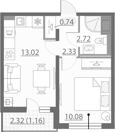 Площадь кухни 13.02 м2