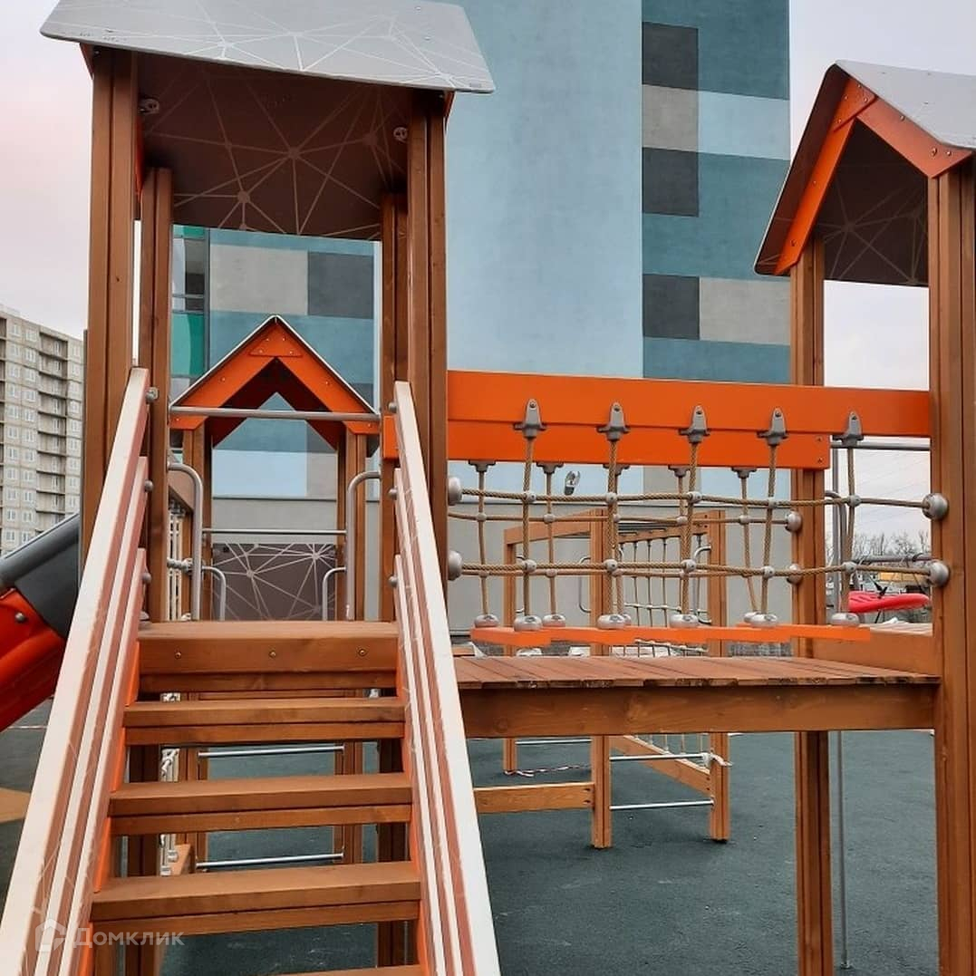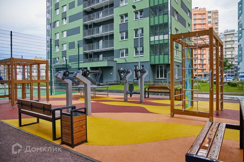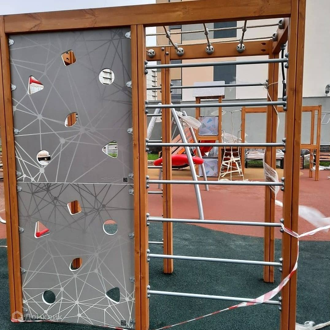 Детские площадки распределены по возрастам. Для занятий спортом на свежем воздухе во дворе установлены турники и тренажеры.