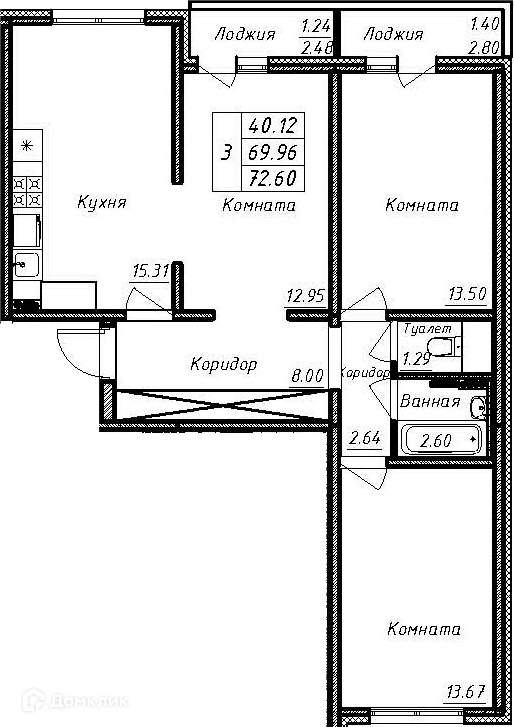 ✔️ Сантехника:Пприборы отопления, стальной ванны с нераздвижным экраном, со смесителем, умывальника без пьедестала со смесителем, унитаз, полотенцесушитель, счетчик учета расхода горячей и холодной воды (в квартире),