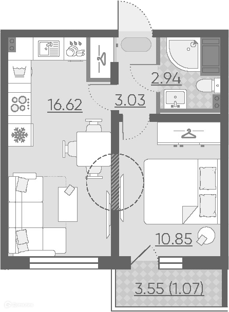 ✔️ Сантехника:Пприборы отопления, стальной ванны с нераздвижным экраном, со смесителем, умывальника без пьедестала со смесителем, унитаз, полотенцесушитель, счетчик учета расхода горячей и холодной воды (в квартире),