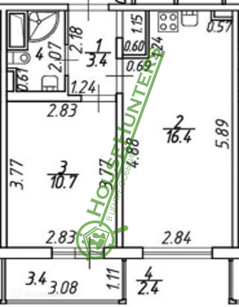 + Комфортная планировка: просторная кухня 16,4м2, изолированная комната 10,7м2 с выходом на лоджию,  совмещенный санузел.