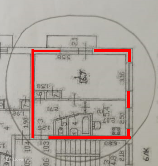 Жилая площадь 16.7 м2