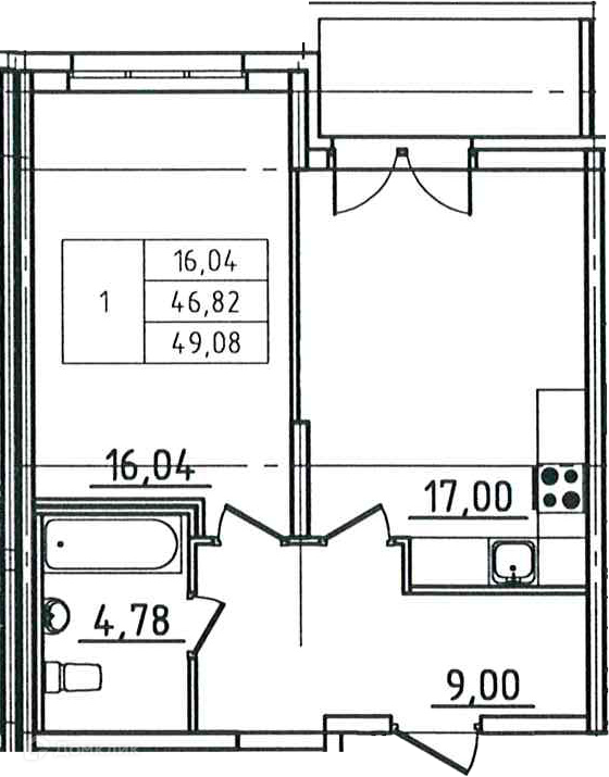 Общая площадь 49.08 м2
