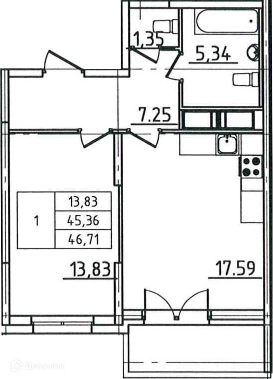 Общая площадь 46.71 м2