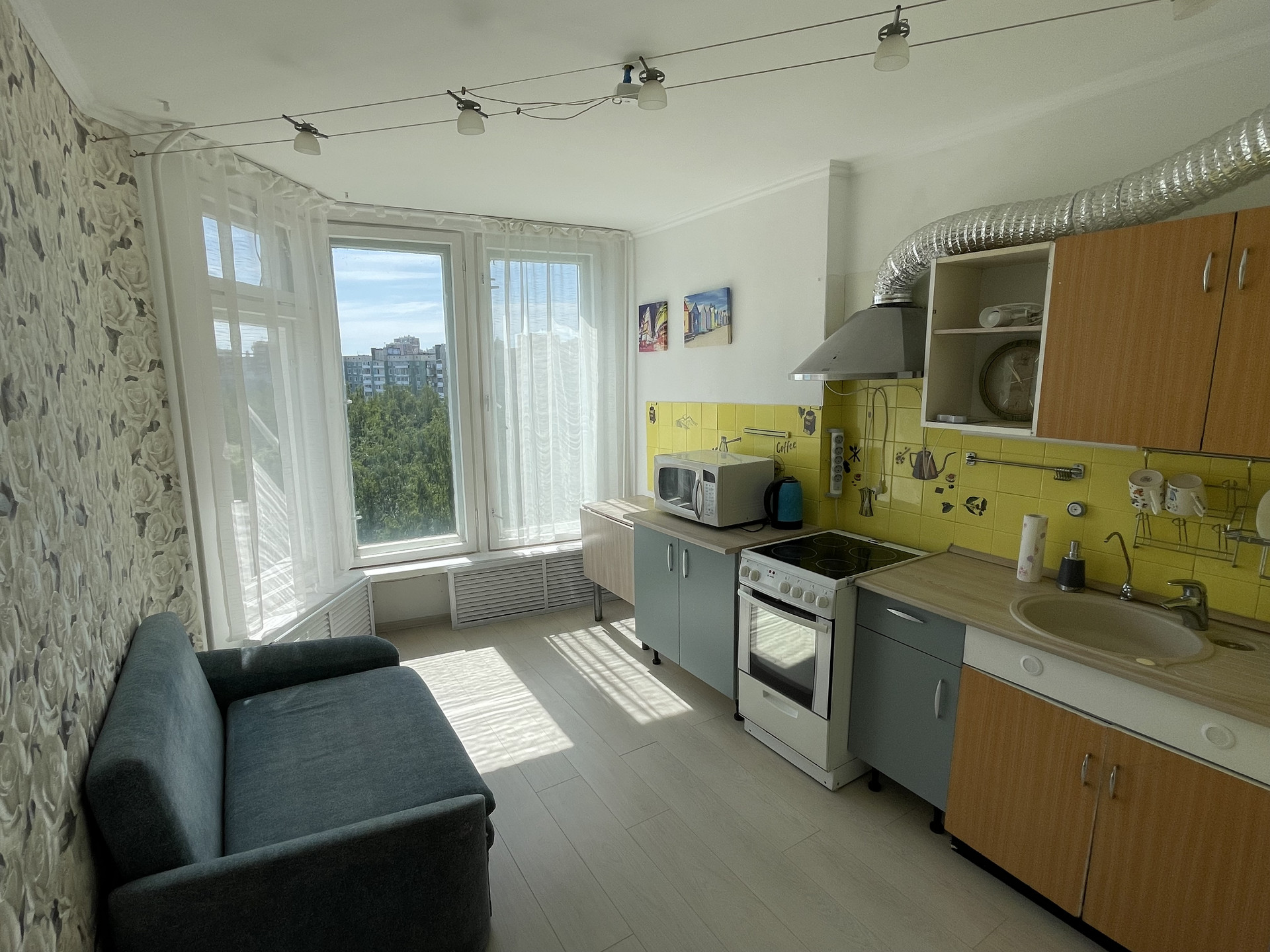 Общая площадь 37 м2 (комната 18 м2, кухня 10 м2). На кухне панорамные окна. Есть лоджия (идет плюсом к общему метражу). Санузел раздельный.