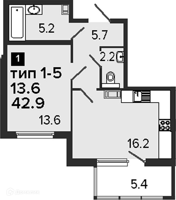 Количество комнат 1