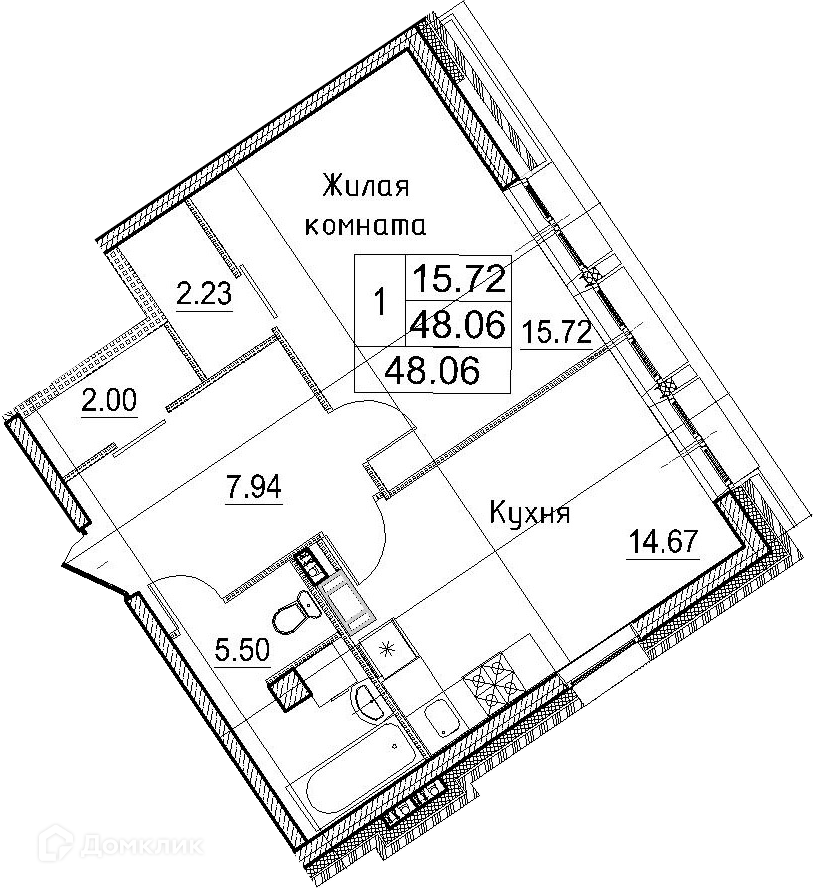 Общая площадь 48.06 м2