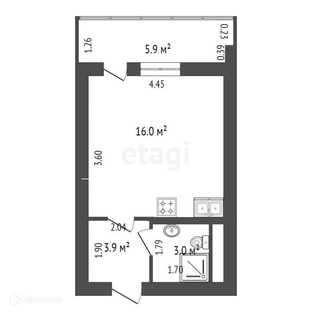 Общая площадь 22.9 м2