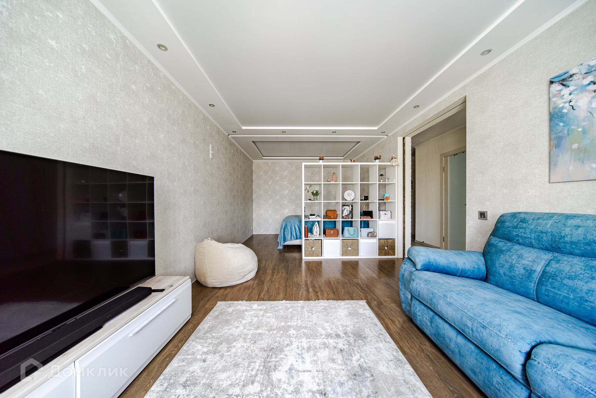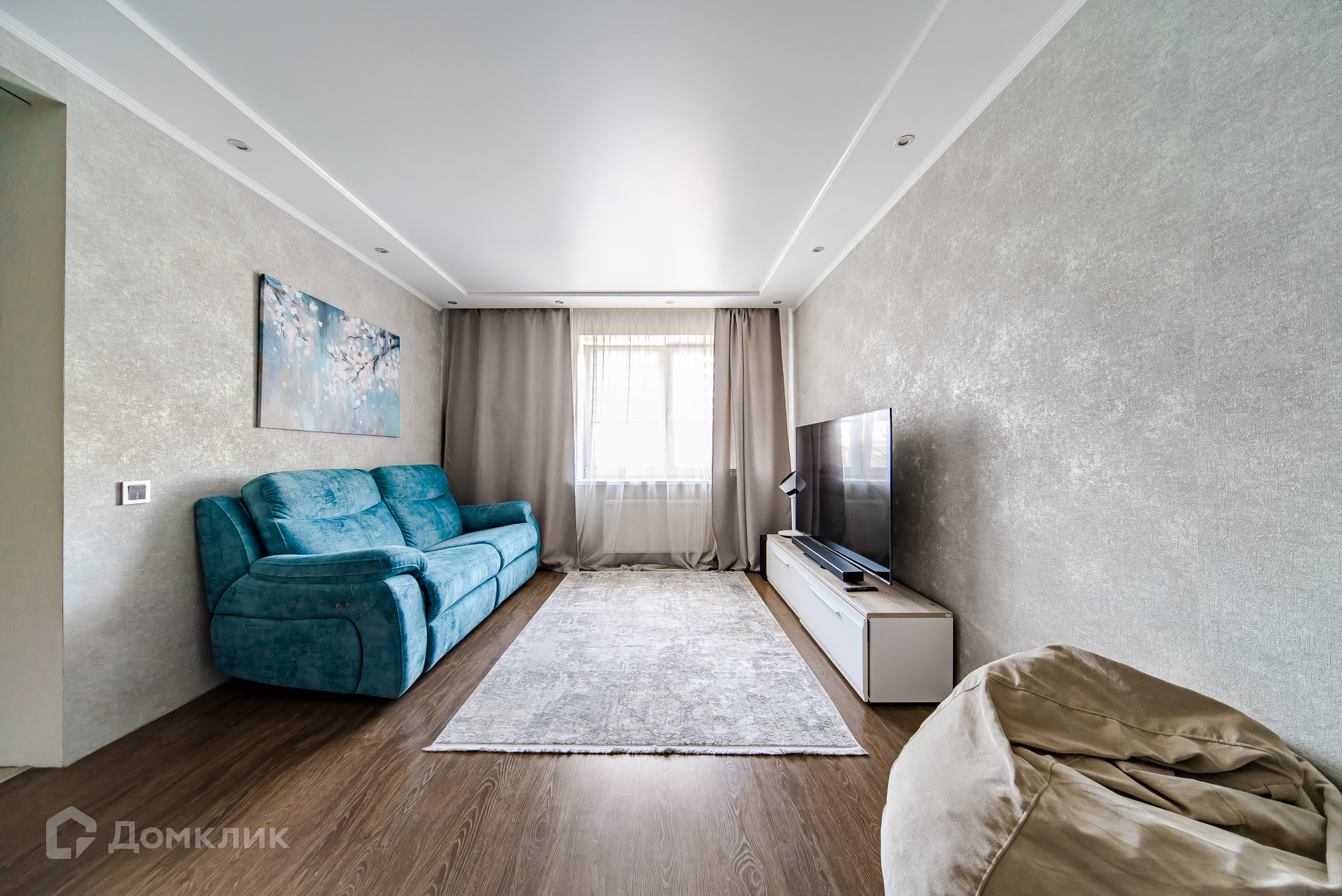 В квартире произведен качественный дизайнерский ремонт, с продуманным зонированием, что позволяет рационально использовать пространство, а панорамные окна в пол обеспечивают дополнительную естественную освещенность. Практичная планировка комфортного для жизни евроформата включает в себя полностью оборудованную кухню-гостиную с балконом, просторную комнату с выделенной спальной зоной, гардеробную и совмещенный санузел с установленной ванной. Из мебели новым владельцам остается встроенная кухня с техникой.