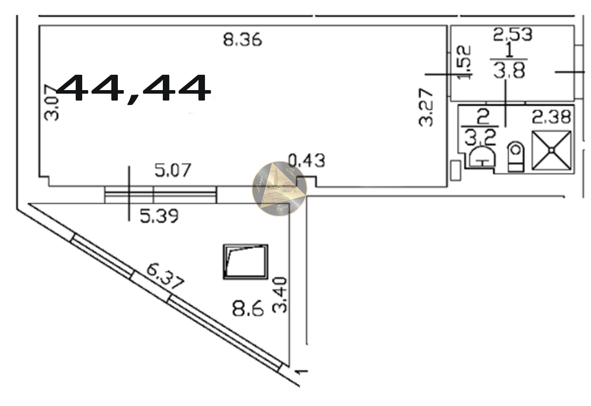 - Общая площадь квартиры 44,44 м2