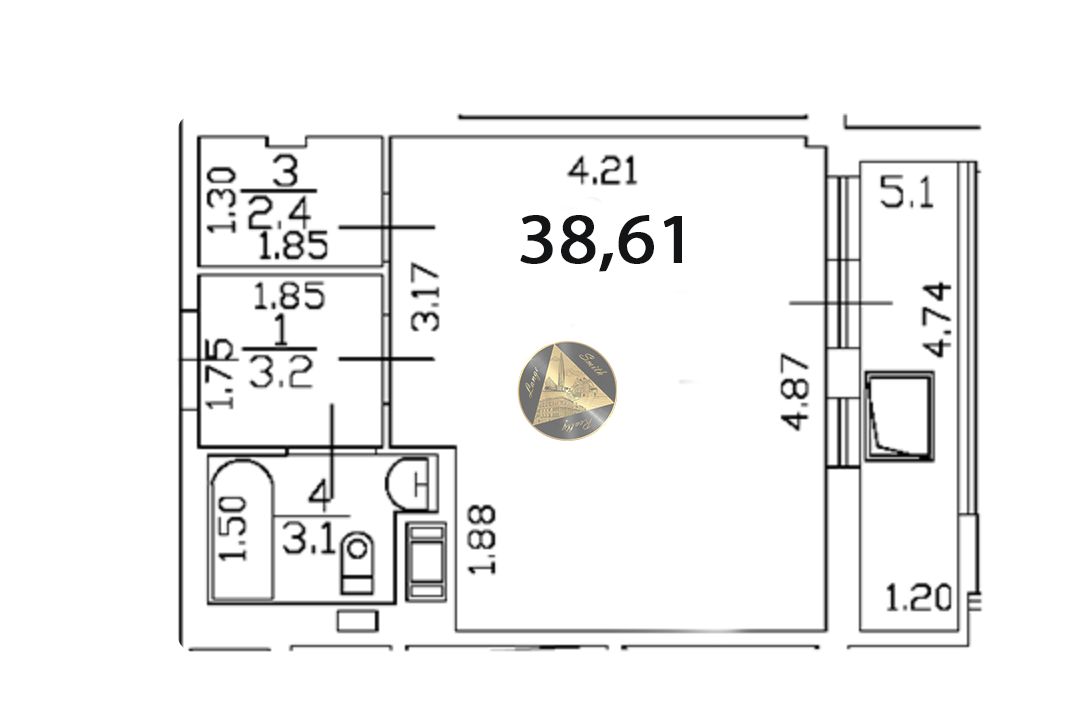 - Общая площадь квартиры 38,61 м2