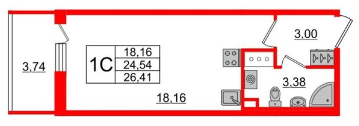 Общая площадь 24.54 м2