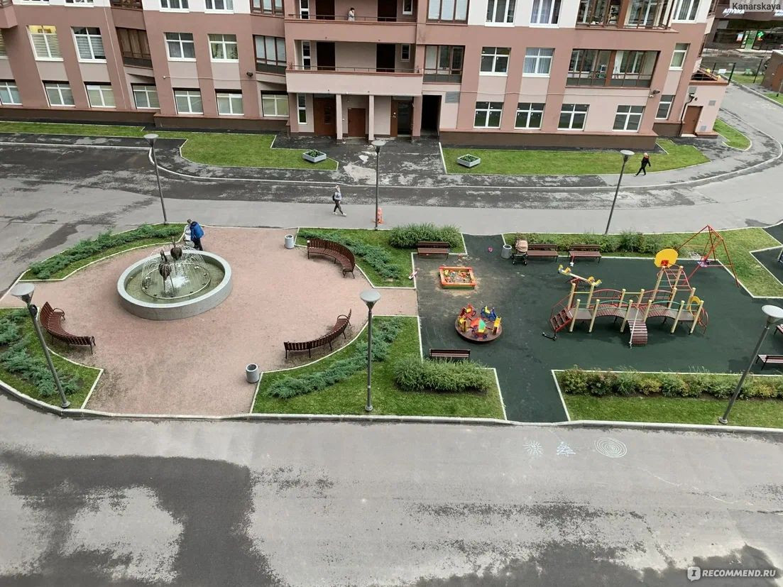Новый дом, жилой комплекс Фламинго, с фонтаном во дворе.