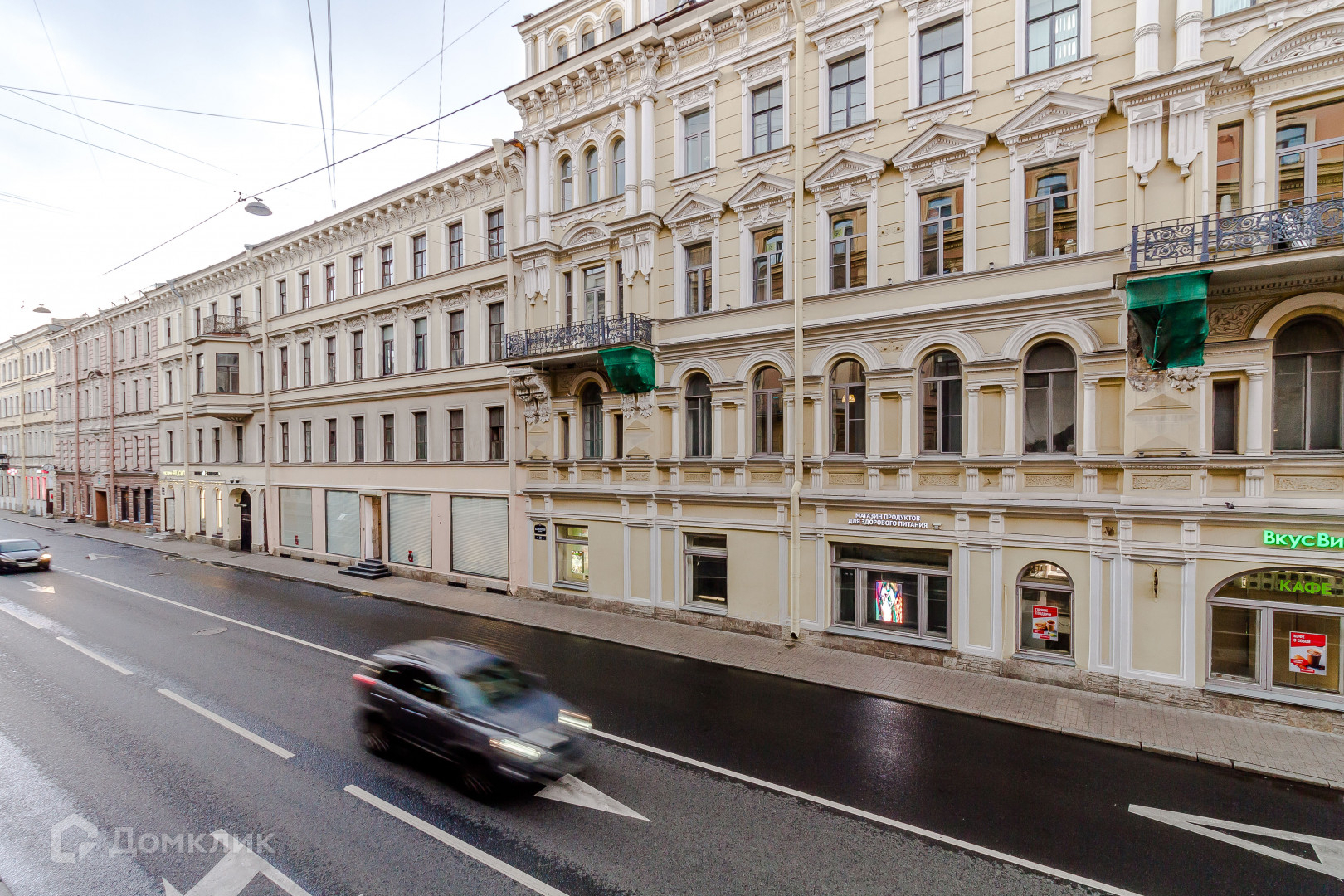 окна выходят в тихий двор и на Вознесенский проспект, здание построенное в стиле - Эклектика в 1855 году. В 1979 году был выполнен капитальный ремонт.