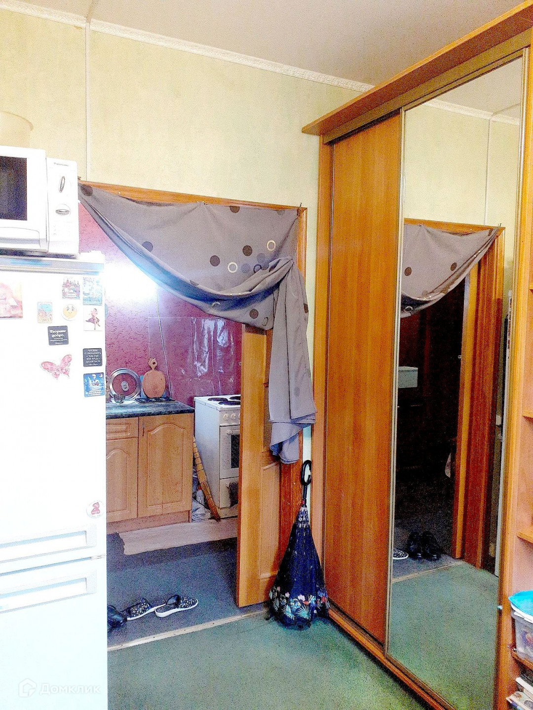 По факту - отдельная квартира, по документам – две комнаты в долевой собственности в доме 137-й серии (бывшего приватизированного общежития), 1983 года постройки, порядок пользования жилым помещением определен. Вход в здание с 2-х сторон(со двора и с улицы), 4 лифта-пассажирский и грузовой-по 2 с обеих сторон.