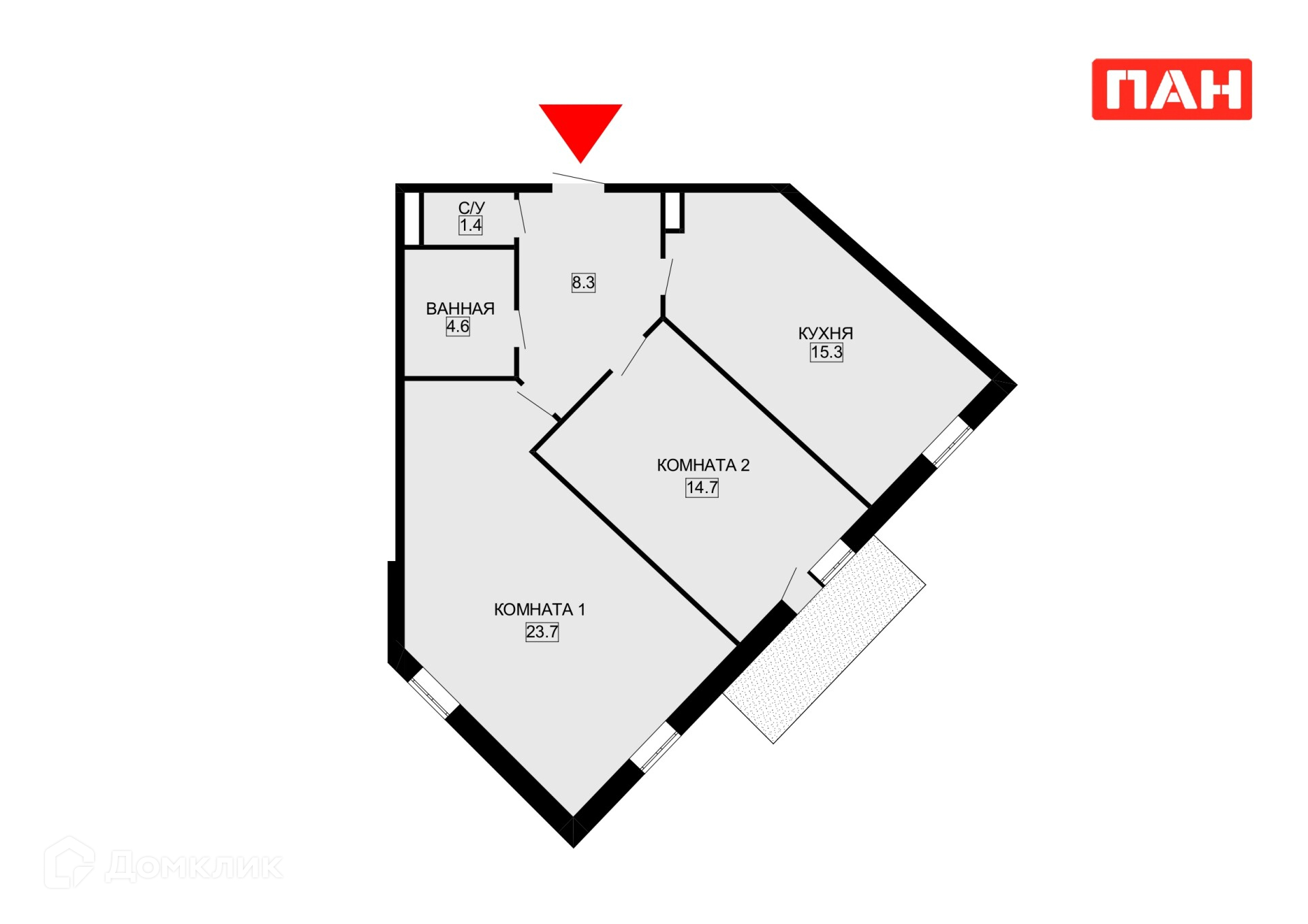 Общая площадь 68.3 м2