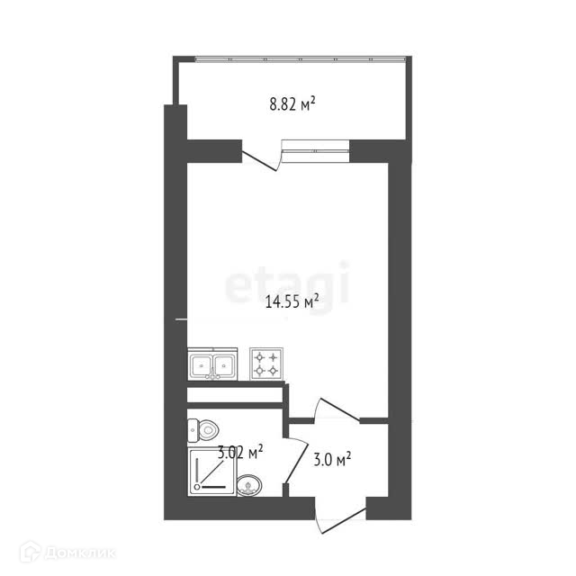 Студия 23,22 м2 + терраса 8.82 м2