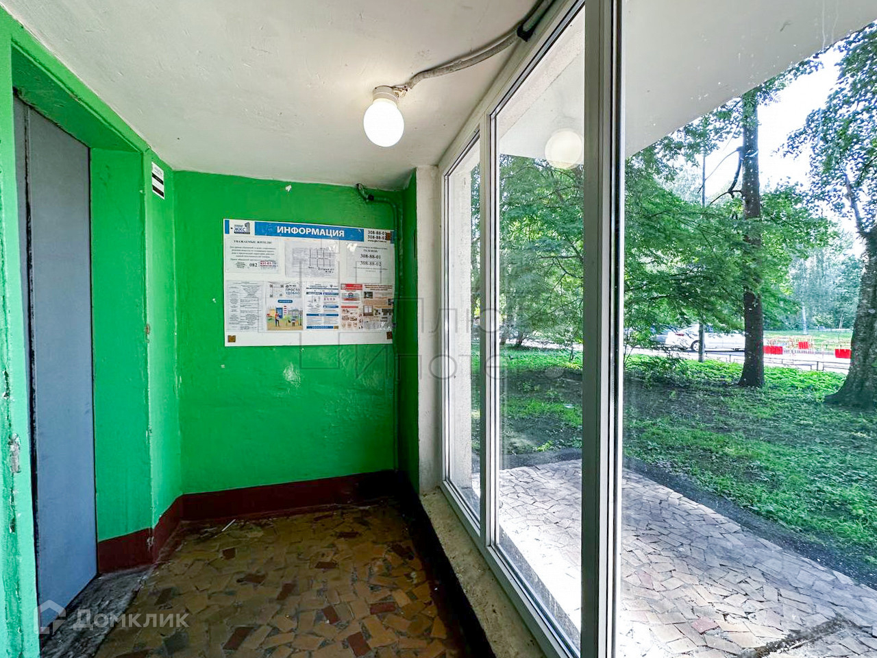 Окна с лоджии выходят на "Алею Транспортников", остальные в тихий зелёный двор.