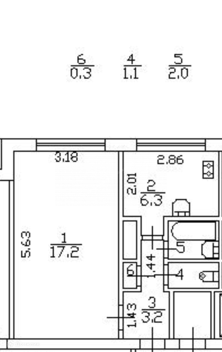 Жилая площадь 17.2 м2