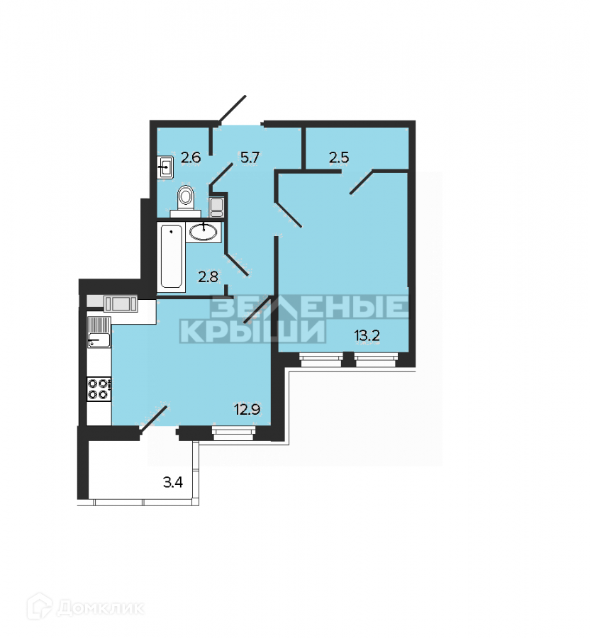 Площадь кухни 12.9 м2
