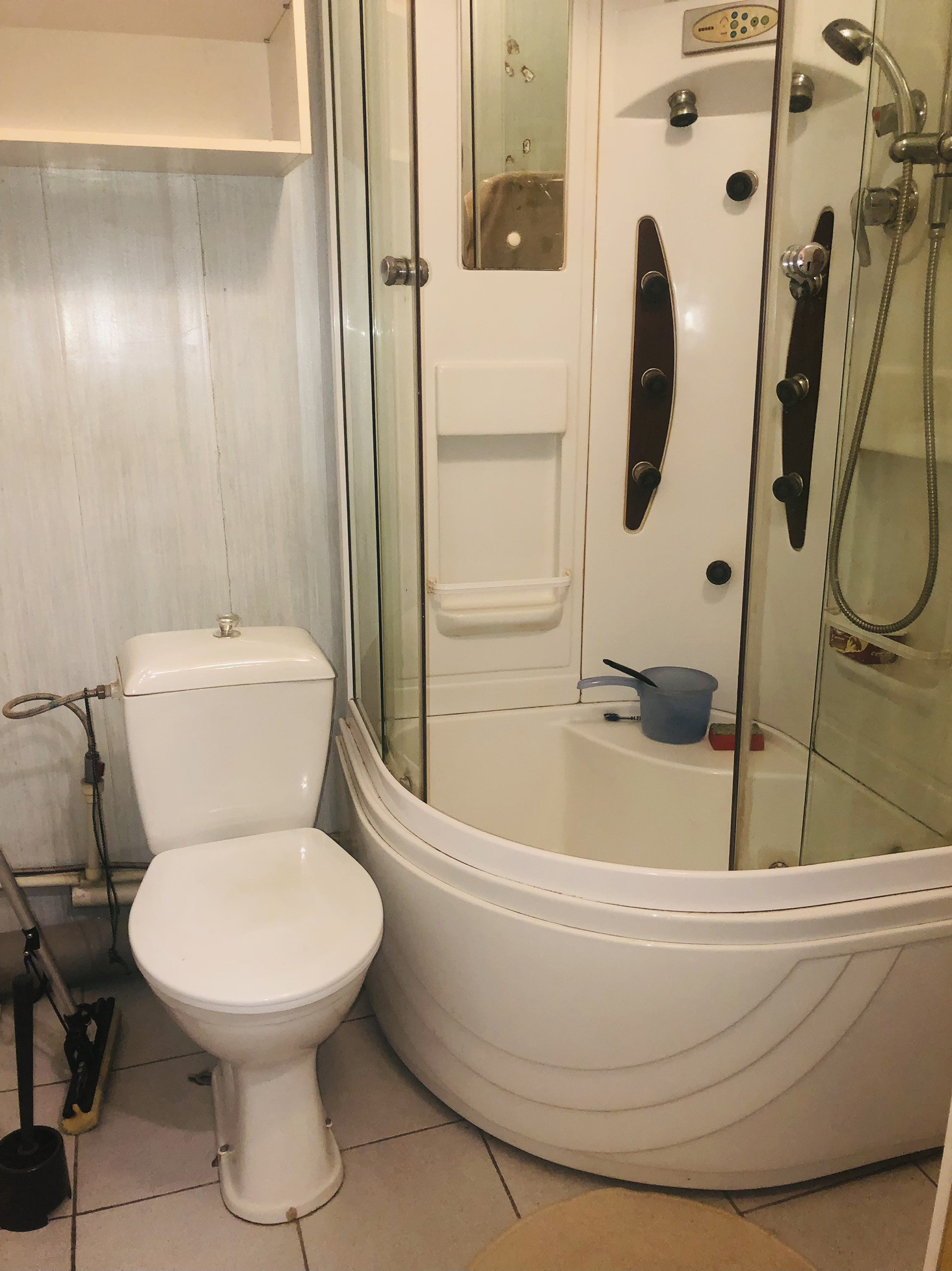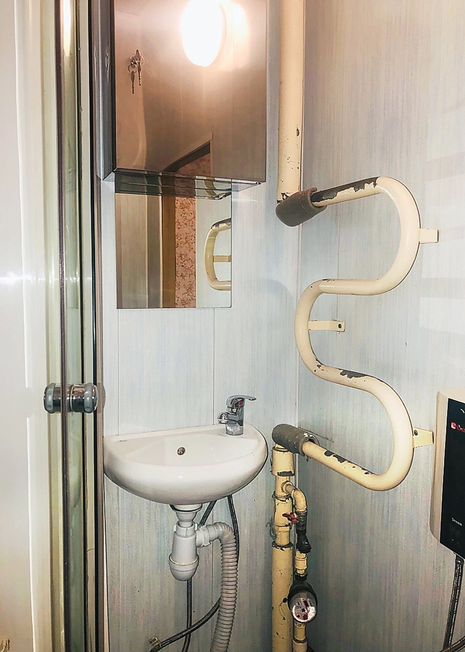 В с/у установлена душевая кабина и водогрей.