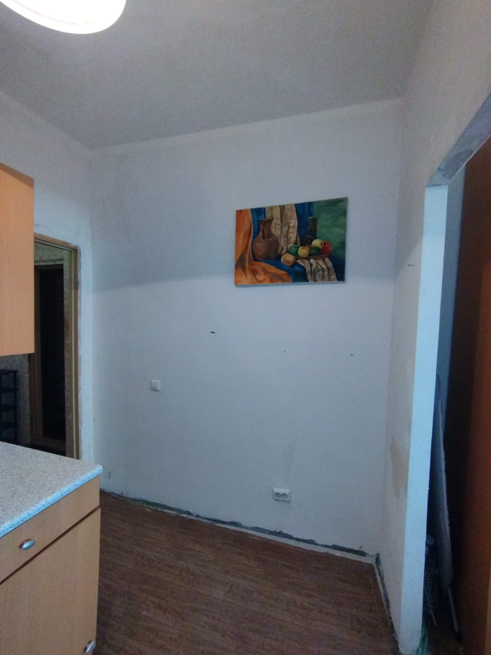 Требуется оклейка обоями и укладка напольного покрытия.