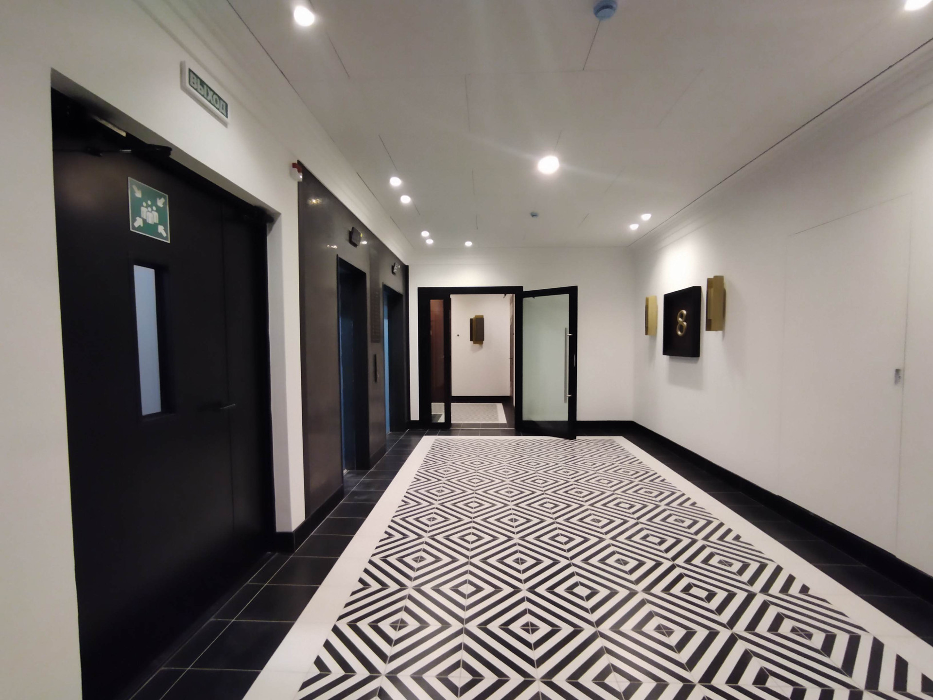 На первом этаже запроектирована торговая галерея с магазинами, кафе и другими объектами коммерческой инфраструктуры.