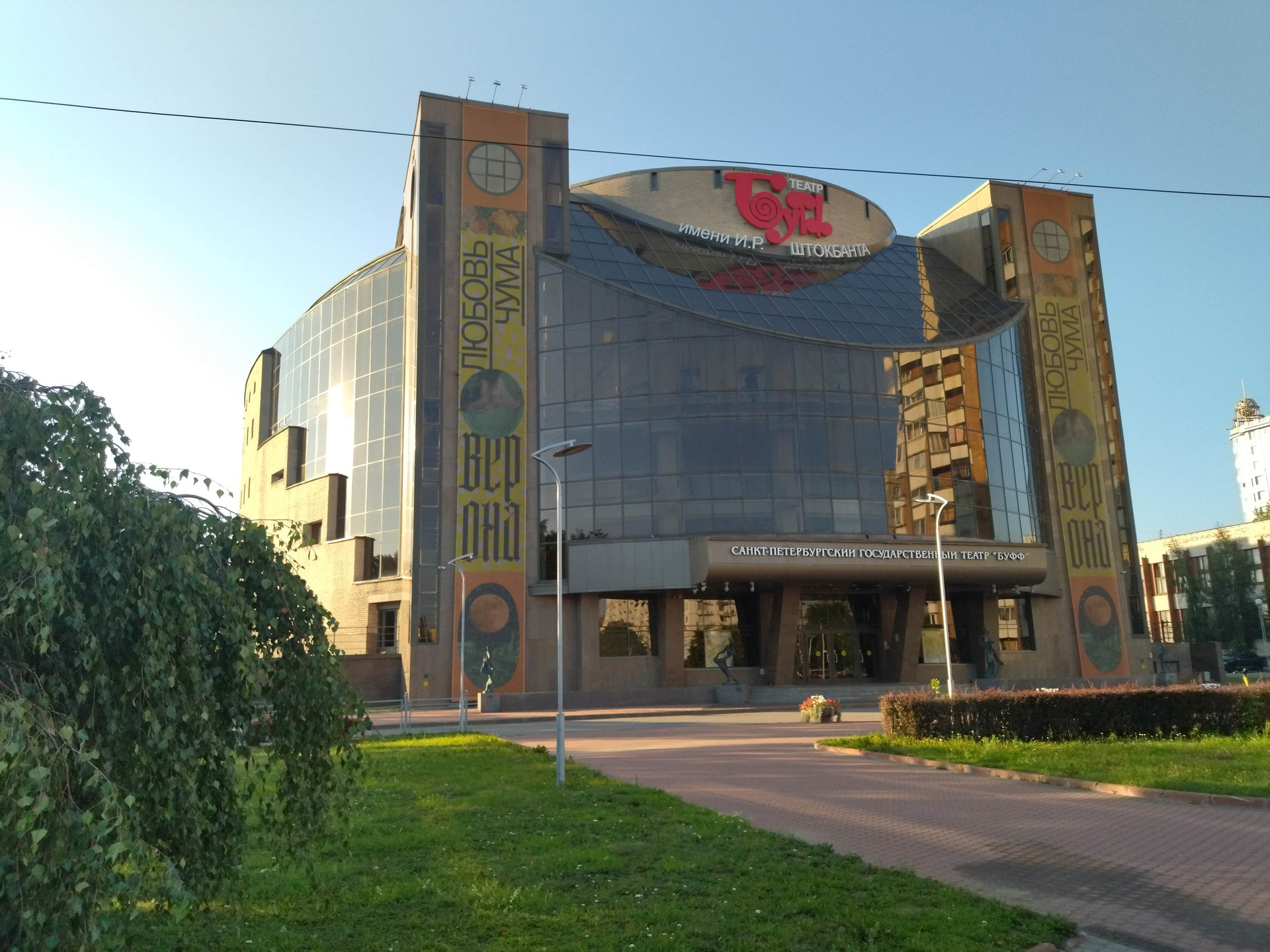 Кроме того, тут построено и функционирует большое количество супер- и гипермаркетов, кинотеатров, торговых центров. В 500 метрах работает торгово-развлекательный центр "Охта-Молл".