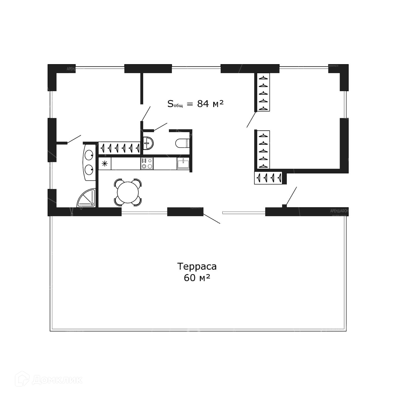 Общая площадь 84 м2
