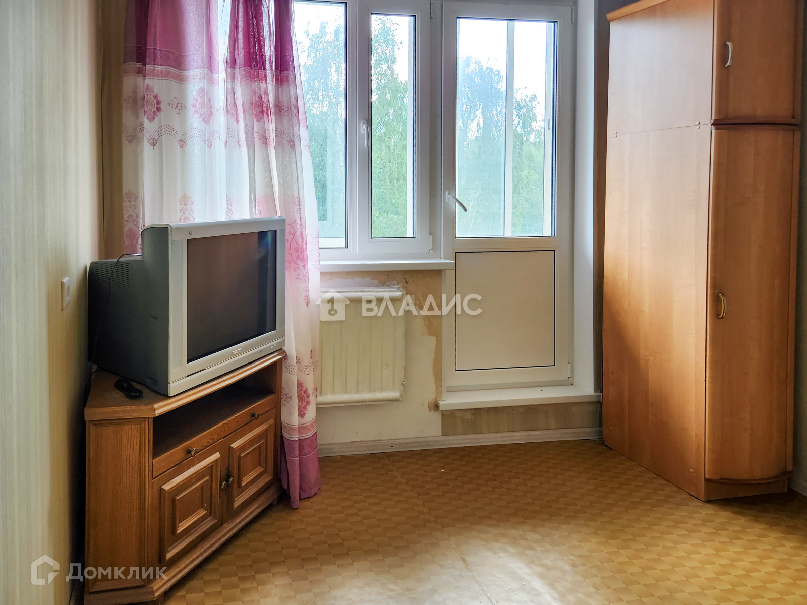 Большое окно в комнате и застекленная большая лоджия.