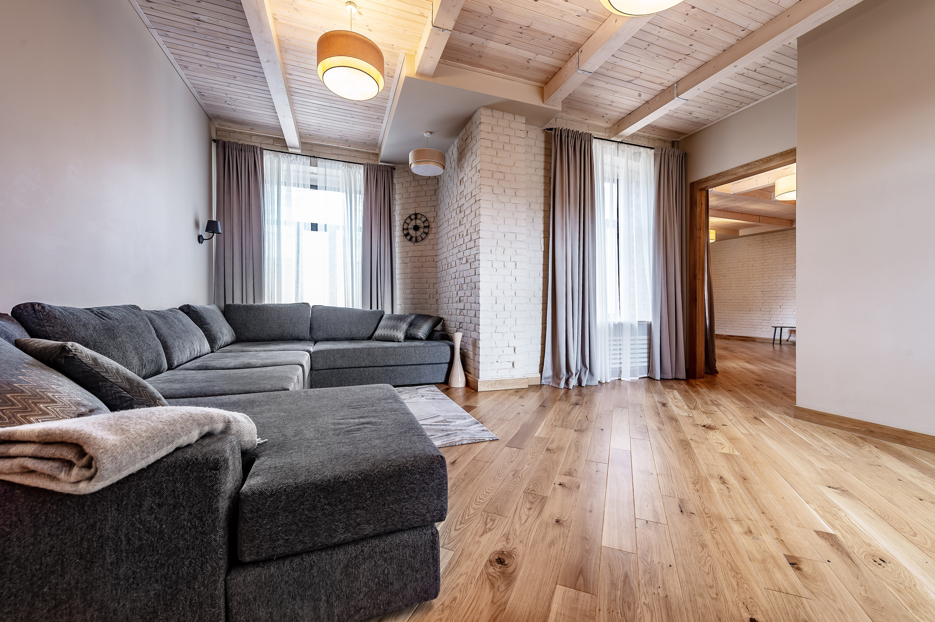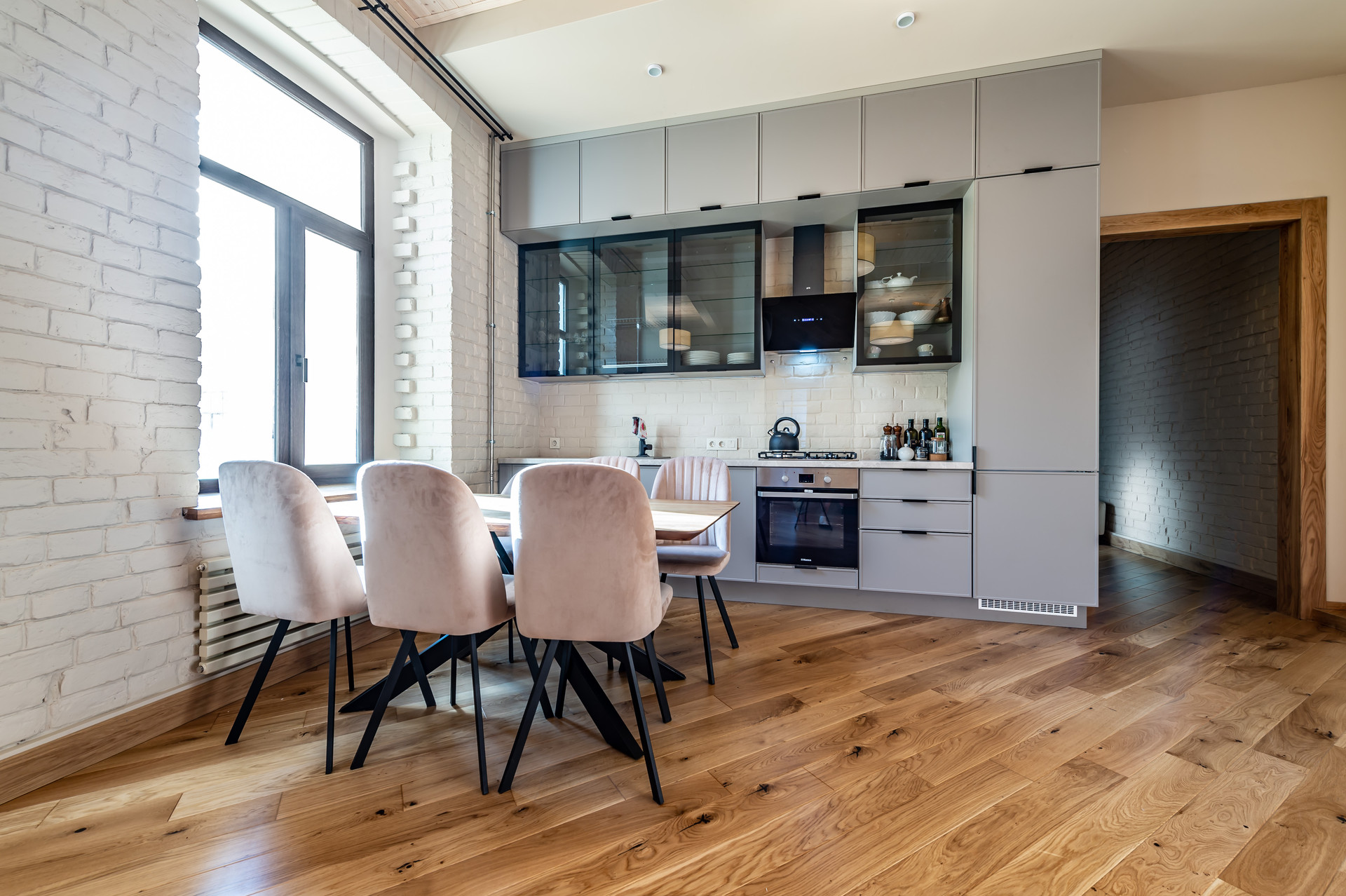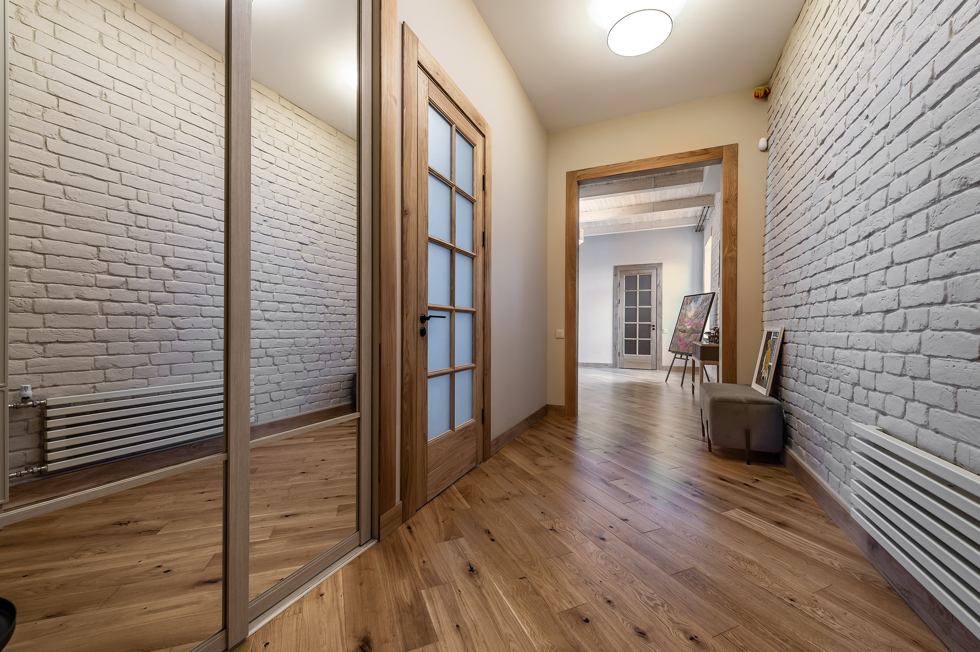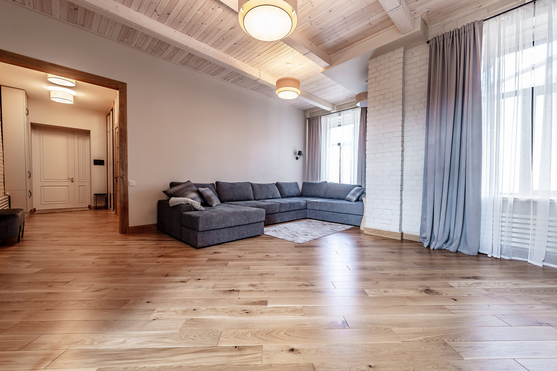 Для ремонта использованы натуральные качественные материалы. Пол, двери, подоконники выполнены из массива натурального дуба. В квартире есть основная мебель и техника, большие встроенные шкафы.