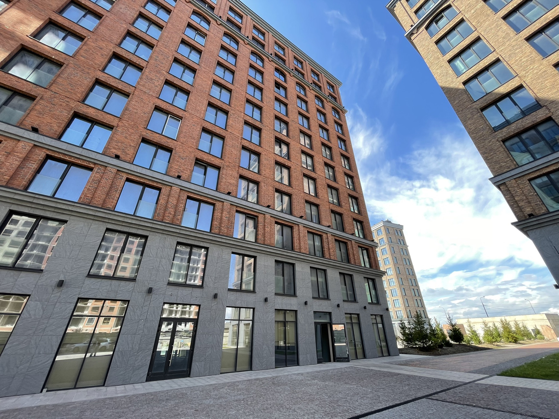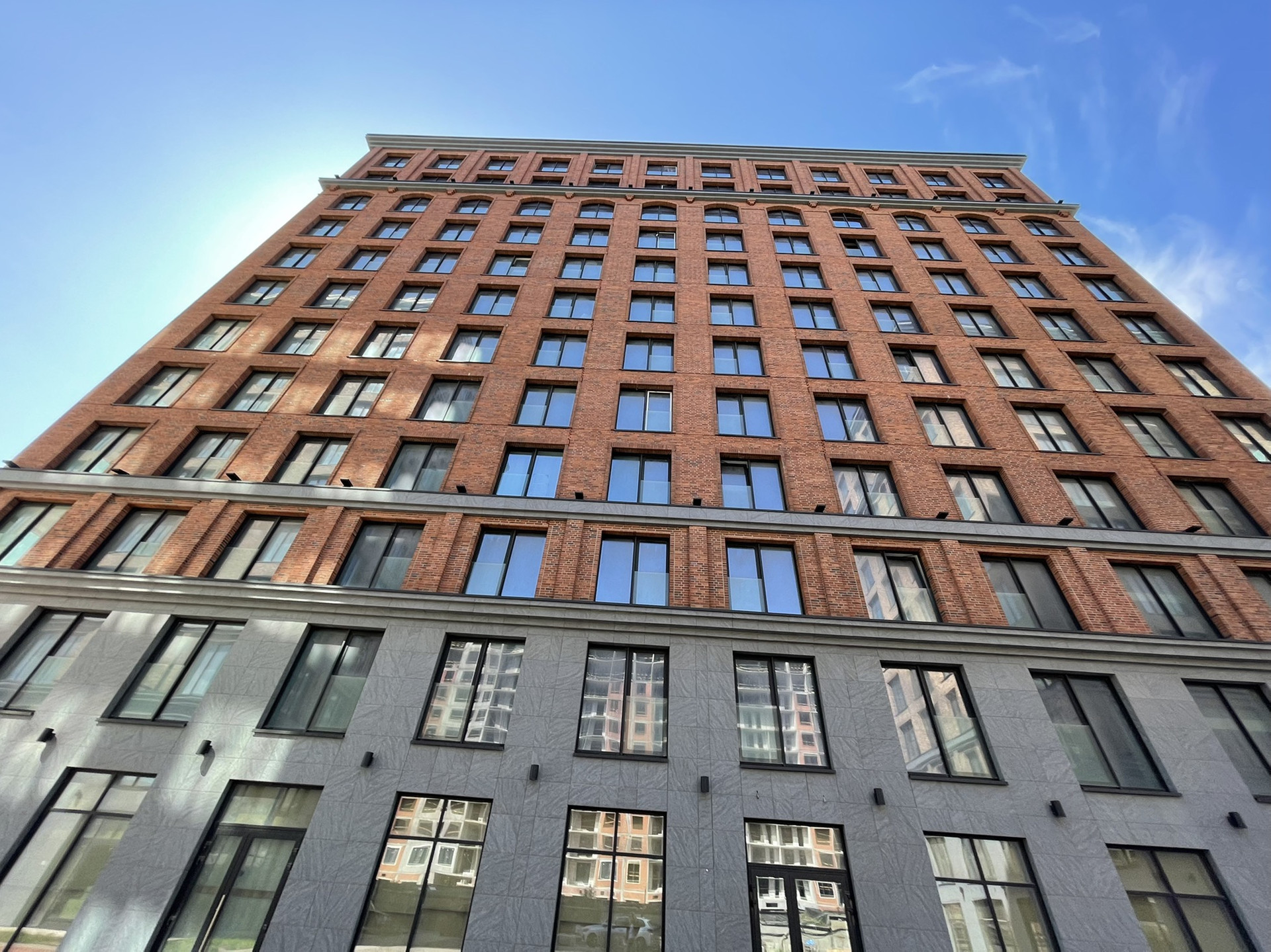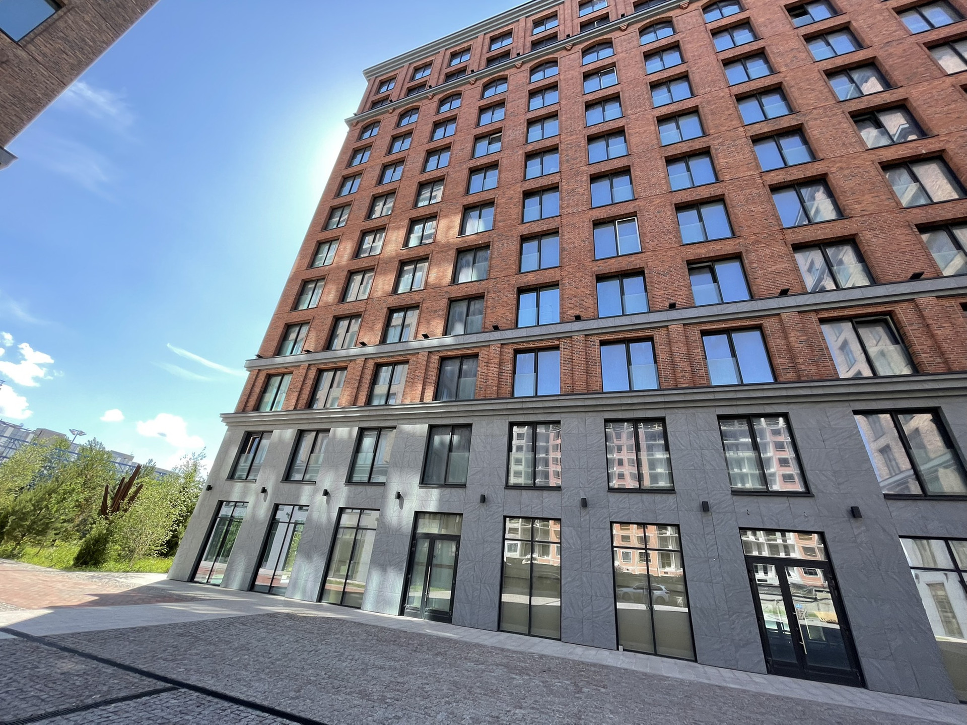 В отделке фасадов использован долговечный клинкерный кирпич из Дании и натуральный камень.