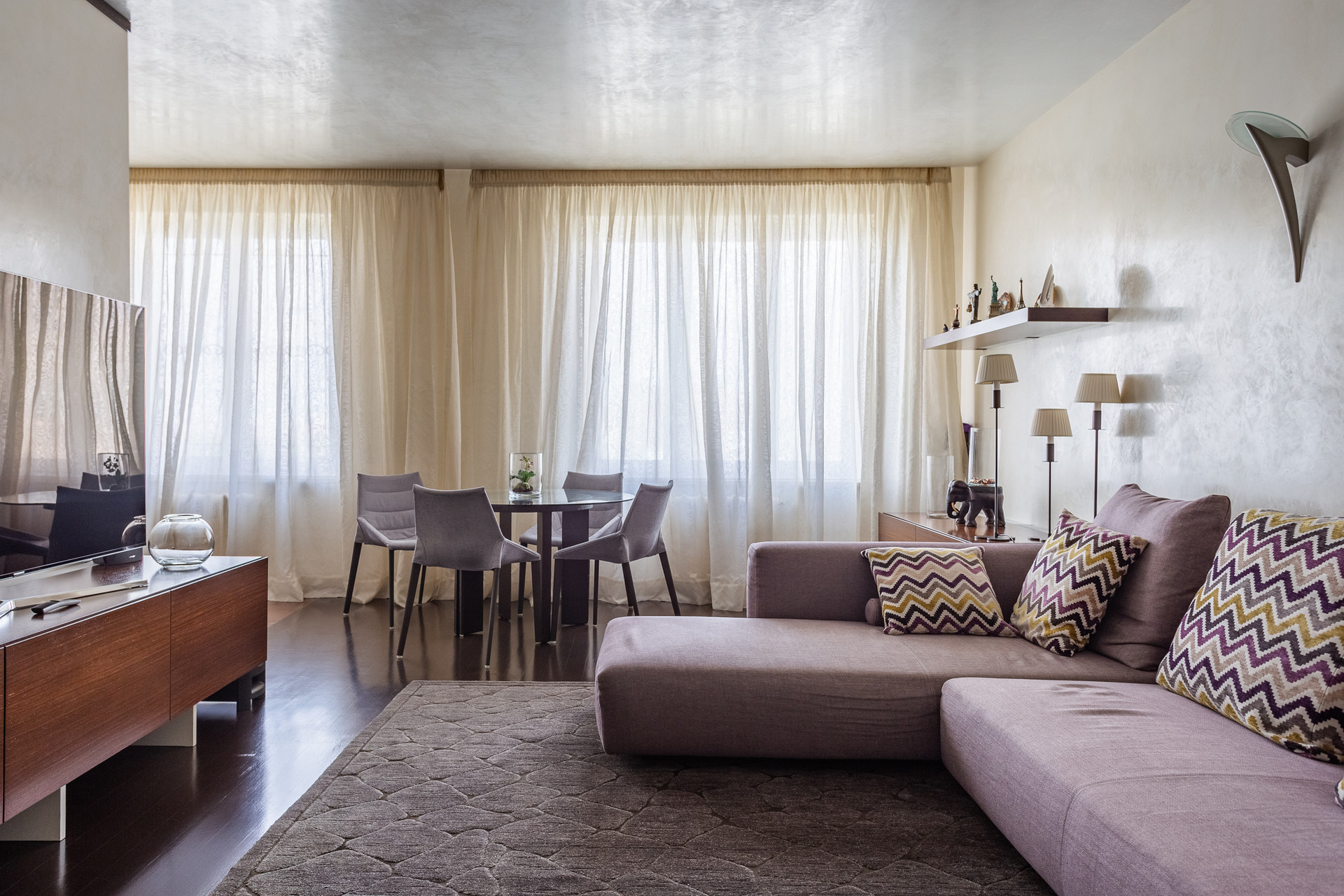 В квартире выполнен дизайнерский ремонт из качественных, дорогостоящих материалов и мебели. На полу во всех комнатах паркетная доска, стены и потолок в гостиной и спальне - венецианская штукатурка. В квартире практически никто не жил.
