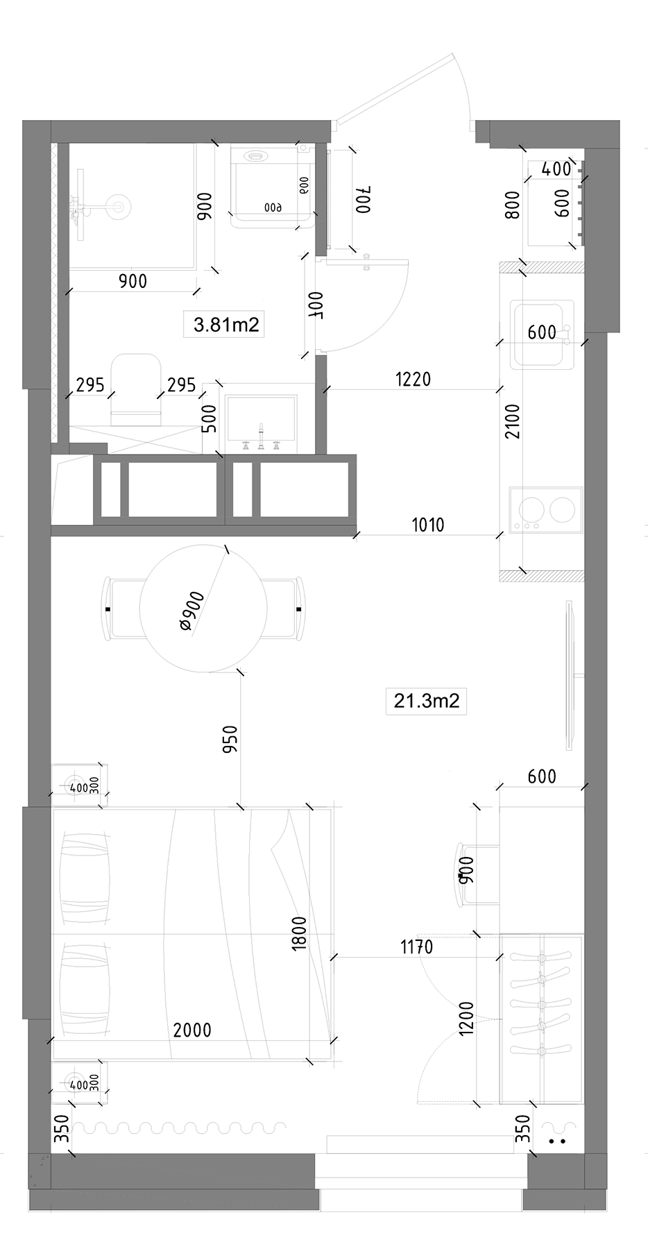 Жилая площадь 21.3 м2