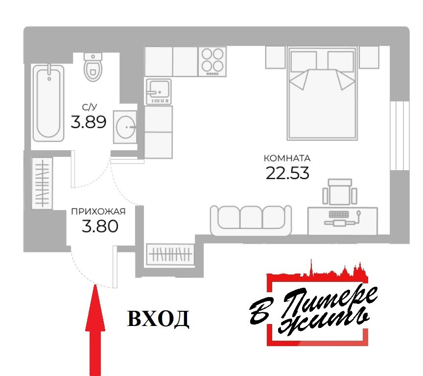 Жилая площадь 22.53 м2