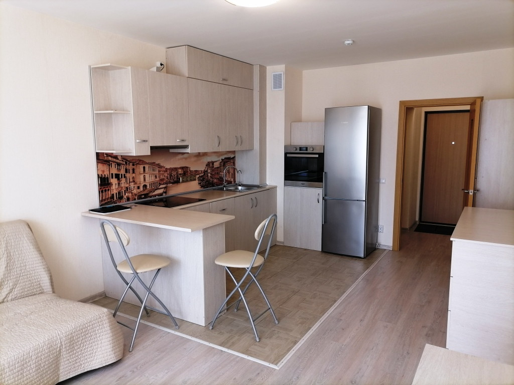 Прямая продажа. Один собственник. Документы готовы. Физически свободна. Никто не прописан. Первая продажа. В собственности более пяти лет. Без перепланировок. Новый, современный, монолитный дом 2016г.п., с качественной тепло- и звукоизоляцией в ЖК Калина Парк-2 в современном, динамично-развивающемся микрорайоне от надёжного застройщика и производителя строительных материалов - строительной компании Группа ЛСР. Дом находится в зеленом и ухоженном дворе. Во дворе своя бесплатная парковка, рядом платный паркинг, в округе детские и спортивные площадки с прорезиненным покрытием, полноценные пешеходные дорожки, скамейки для отдыха. Очень чистый подъезд, видео-наблюдение, приличные соседи. Три бесшумных грузо - пассажирских лифта. В квартире произведен качественный ремонт. Квартира чистая и уютная, обстановка домашнего комфорта и тепла. Положительная энергетика квартиры создает уют и комфорт для будущих жильцов. Очень удачная и нестандартная планировка квартиры позволяет рационально использовать жилое пространство комнаты. Высота потолка 2,62м.  Жилая площадь 23,2м/кв разделена на две зоны: кухня со встроенной мебелью, посудомоечной машиной Аристон, варочной панелью Бош, духовым шкафом Аристон, микроволновой печью Канди, стулья, электро-вытяжка, фильтр для воды тонкой очистки, пол керамогранит и спальня с диваном-книжкой, шкафом, комодом, компьютерным столом, пол ламинат. Совмещенный санузел 3,7м/кв, установлена ванна, раковина, унитаз, шкафчик с зеркалом, пол и стены керамическая плитка тёплых тонов. Прихожая 5,6м/кв, имеет две встроенные гардеробные с зеркалами, которые создают дополнительные удобства, пол ламинат. Лоджия с панорамным остеклением 4,2м/кв, с большим шкафом для бытовых нужд, пол керамогранит. Входные металлические и ламинированные межкомнатные двери. Рядом Пискарёвский парк и парк Лесотехнической академии, где будущие жильцы могут чудесно проводить время со своей семьёй на природе: кататься на велосипедах, загорать в солнечный день летом, совершать лыжные прогулки зимой. Вокруг находится сеть небольших магазинчиков, аптека, стоматология, мини пекарни, салон красоты, кафе, парикмахерская, медицинская служба Хеликс, ресторан Токио-Сити, фитнес клубы с бассейном. Поблизости сетевые магазины: Магнит, Окей, Пятёрочка, ВкусВилл, Перекрёсток, ТРК Европолис, Мебельный Континент.