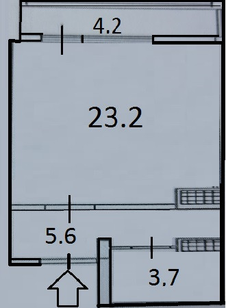 Жилая площадь 23.2 м2