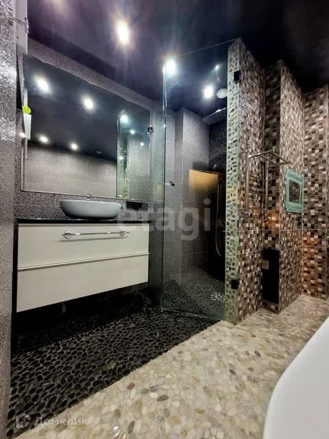 Отделочные материалы - японский камень на полу, в душе и перегородках, и испанская плитка на стенах.