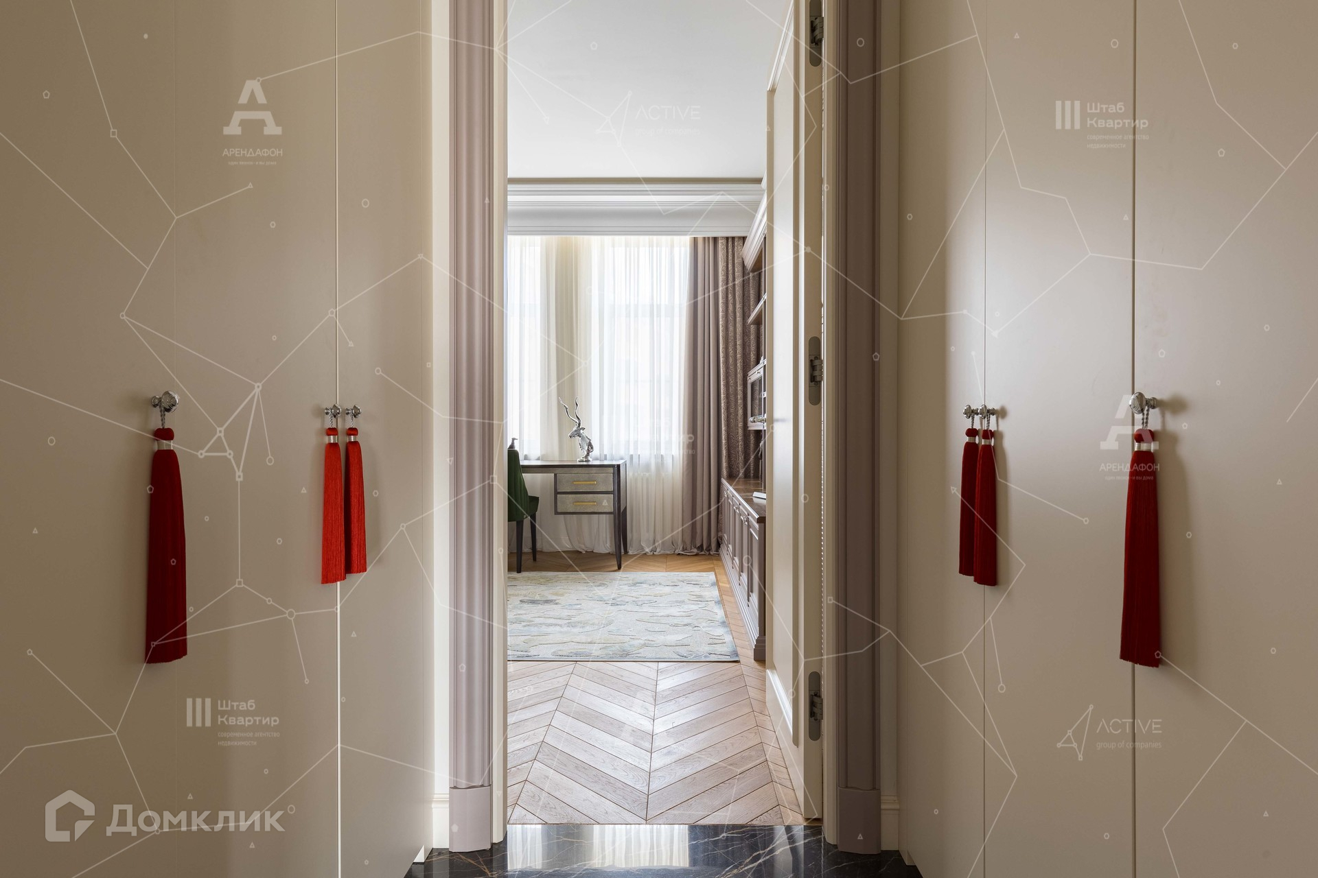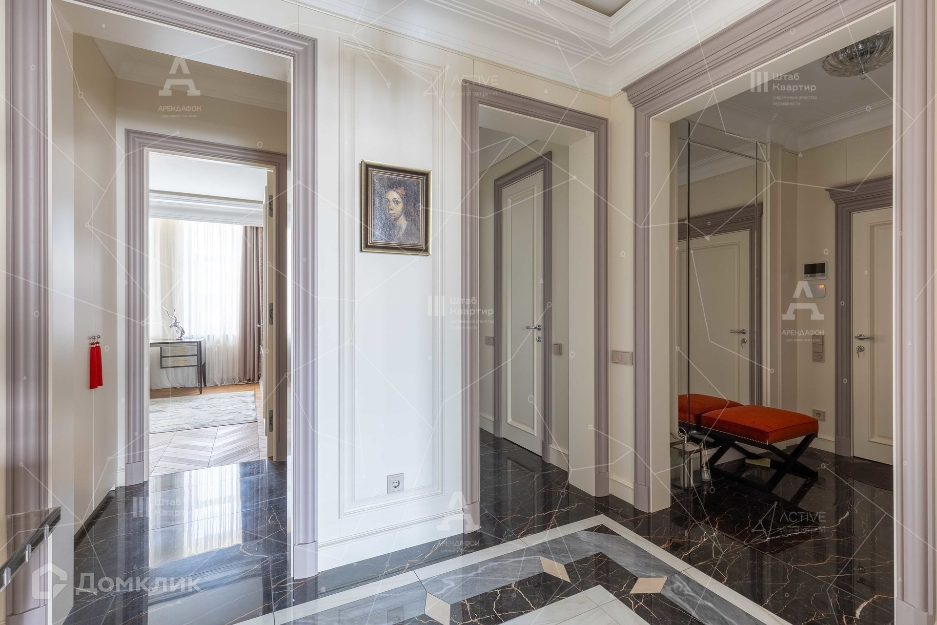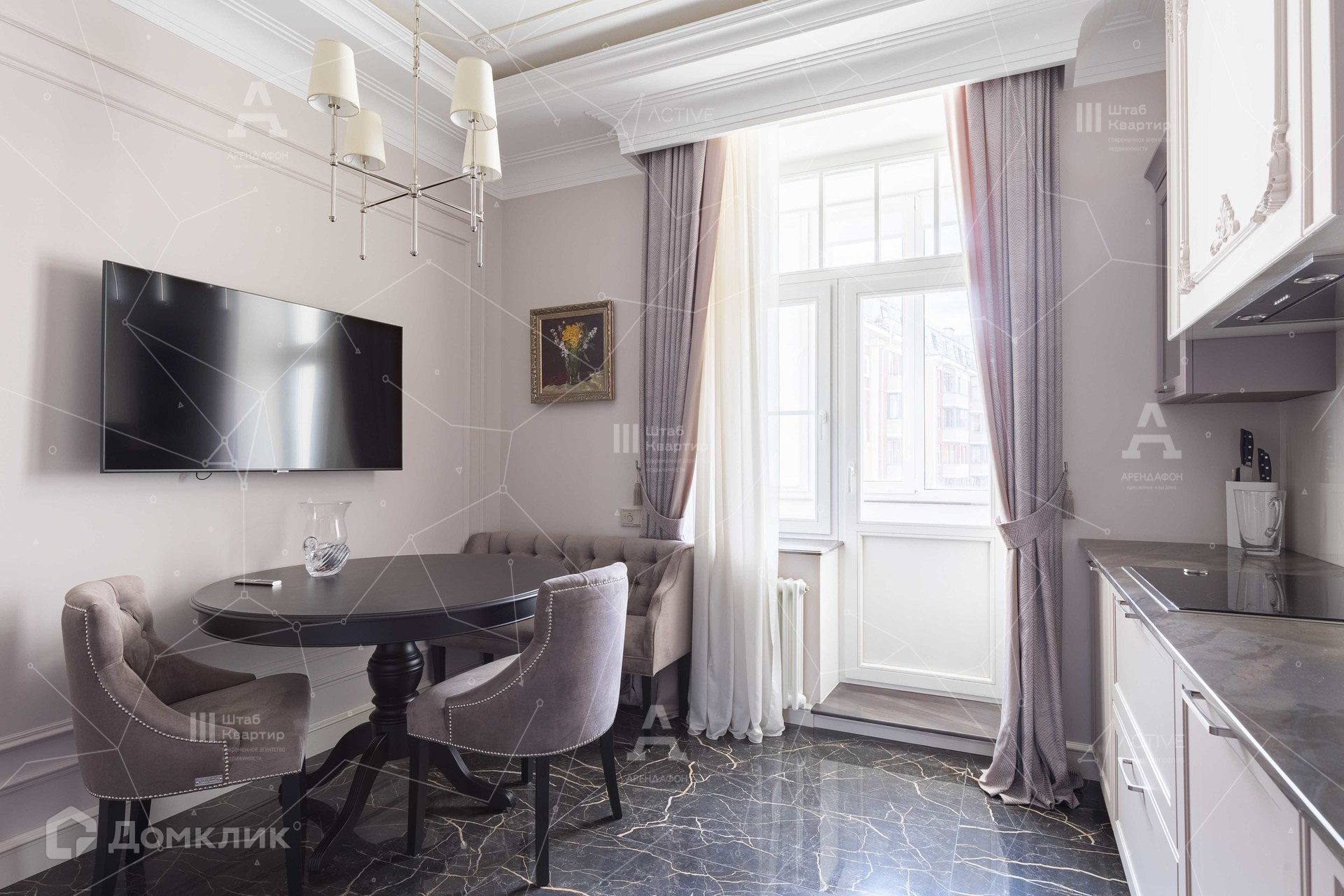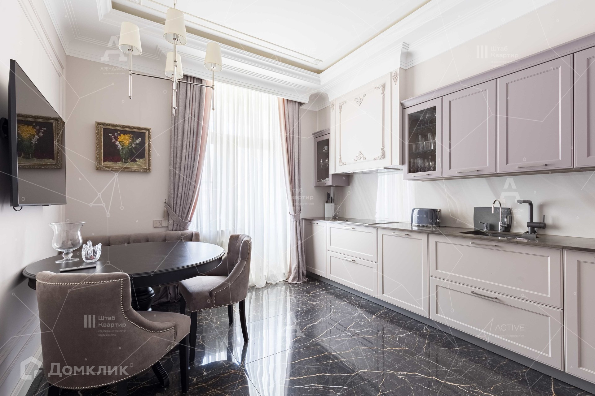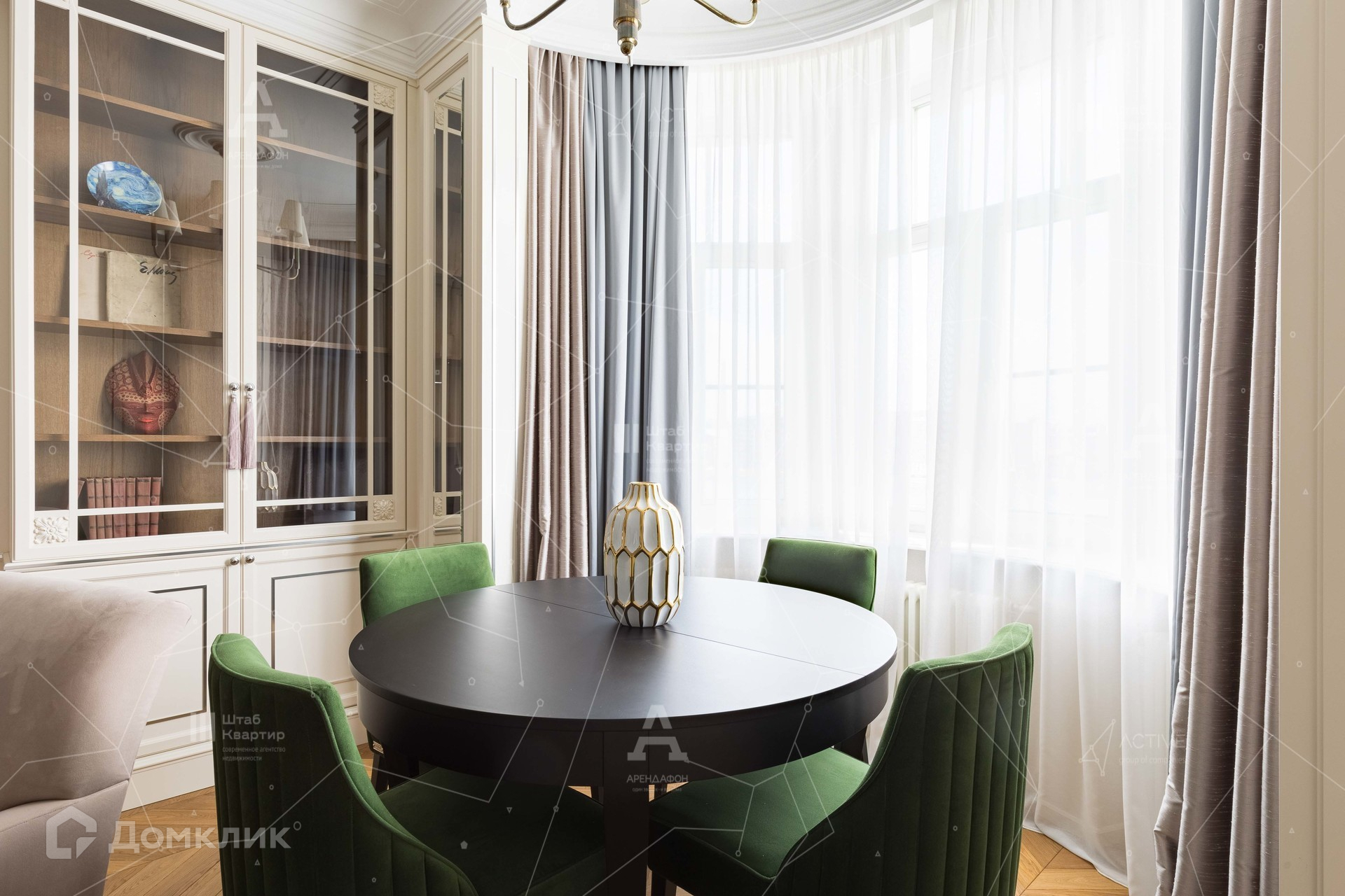 Интерьер выполнен в стиле неоклассики с аккуратными элементами ар-деко.