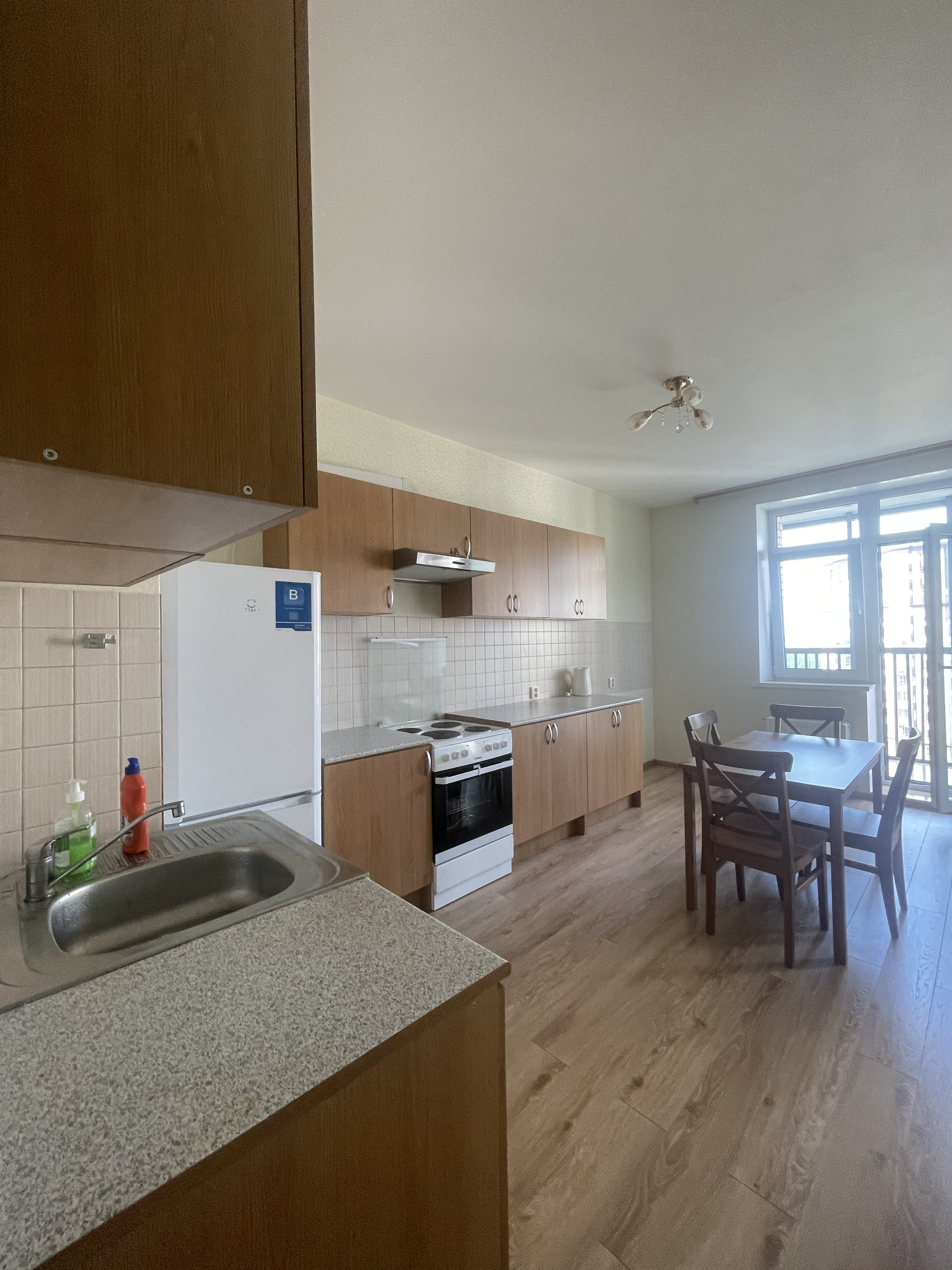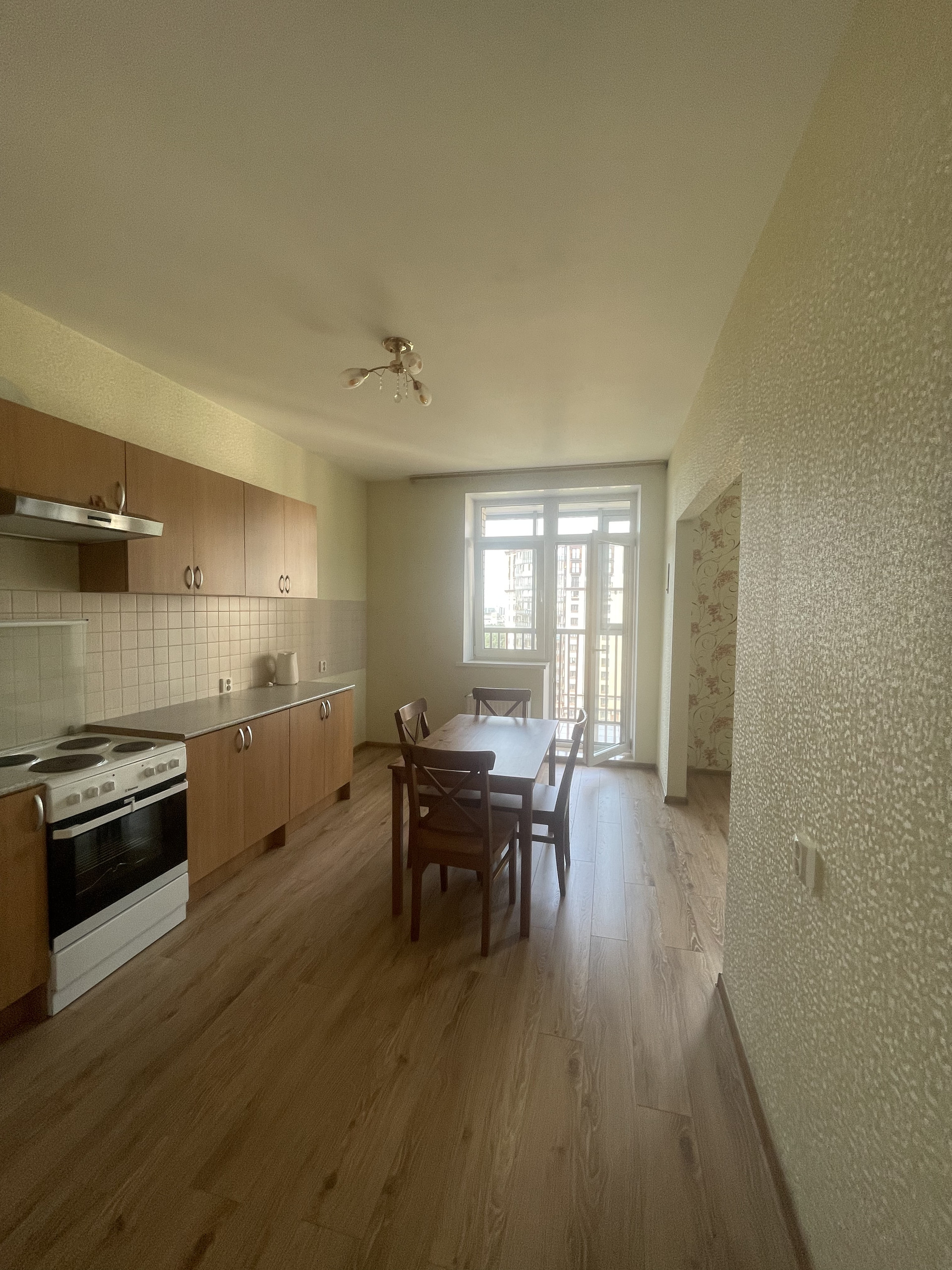 *в кухне выход на балкон с панорамным остеклением, где по утрам можно выпить кофе.