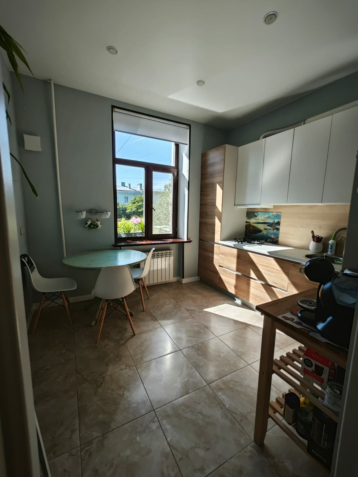 Сейчас в квартире все новое: электрическая проводка, сантехническая разводка, стены выстроены заново (кроме капитальных), потолки, полы, фирменные деревянные окна, стояки отопления и газа. Окна выходят на две стороны.