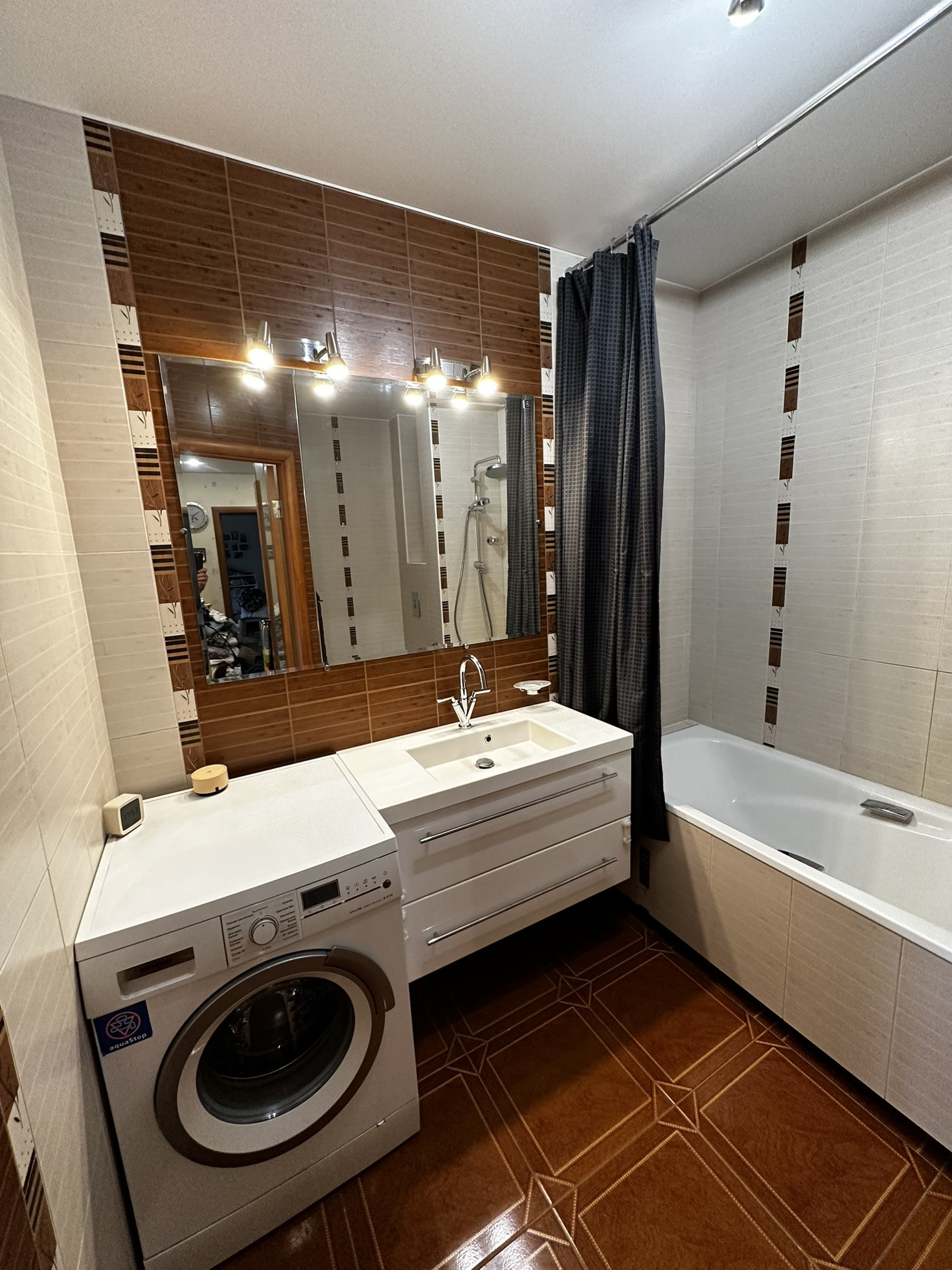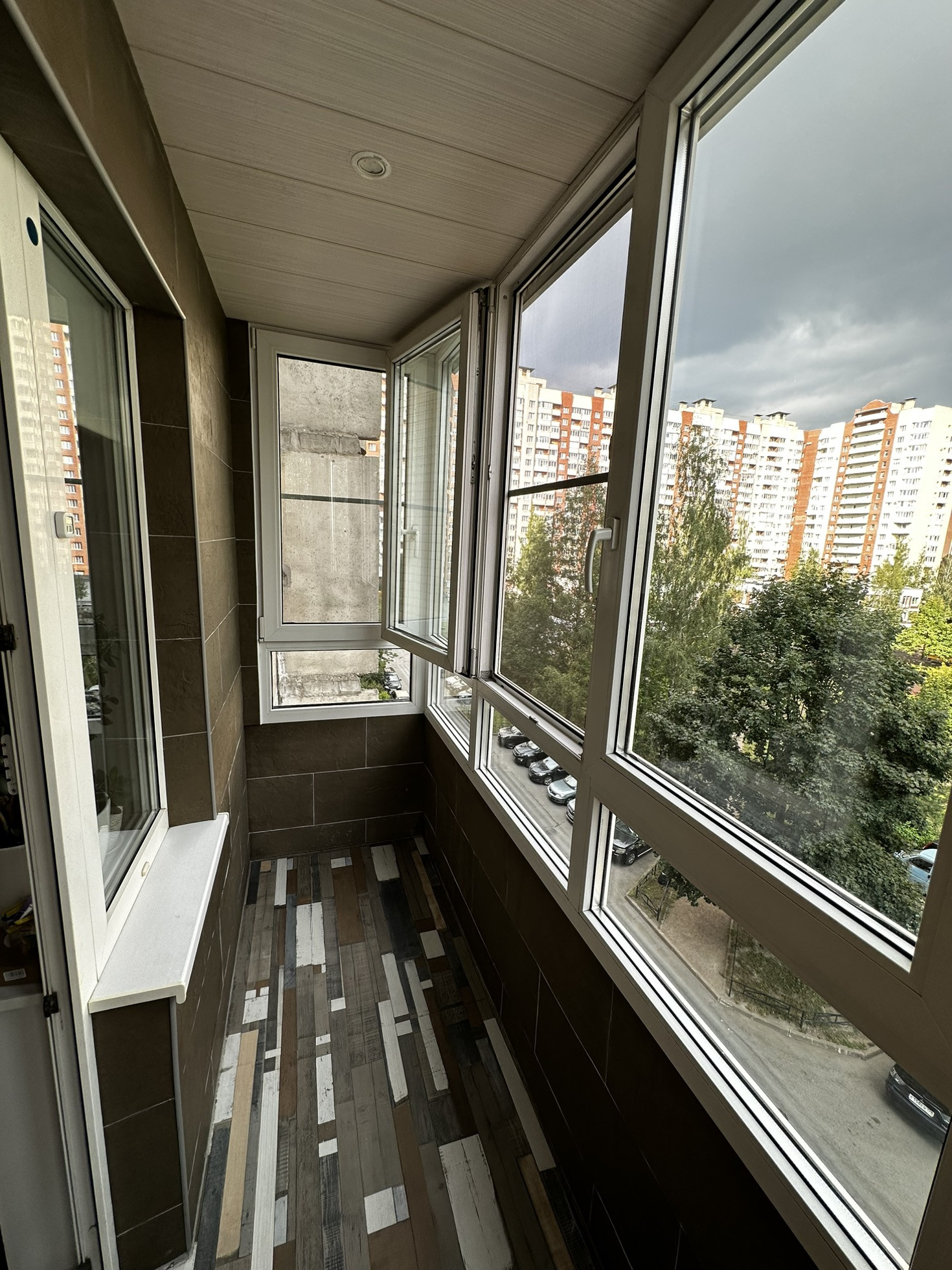 -Балкон (остеклен и утеплен, отделан гибким камнем, проведено освещение)