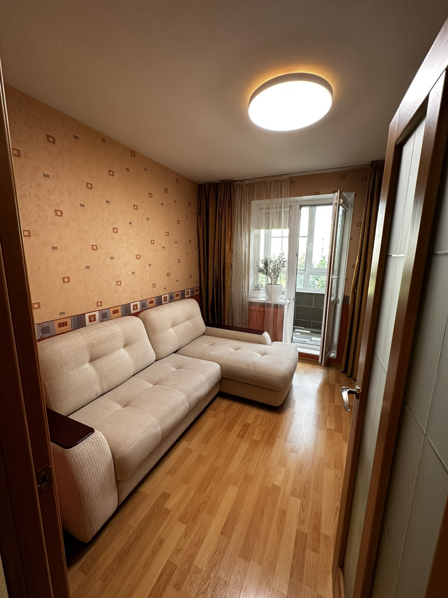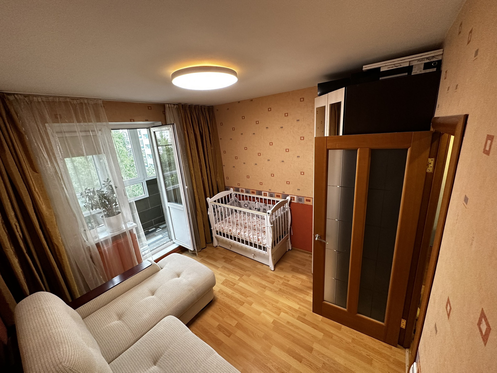 Окна из квартиры выходят в зеленый двор, тихо, светло и спокойно.