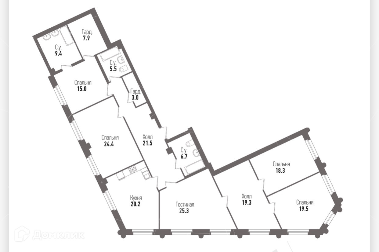 5-комнатная квартира, 196 м2, этаж 1 / 7, на продажу в Санкт-Петербурге, Эсперова улица, 16/23