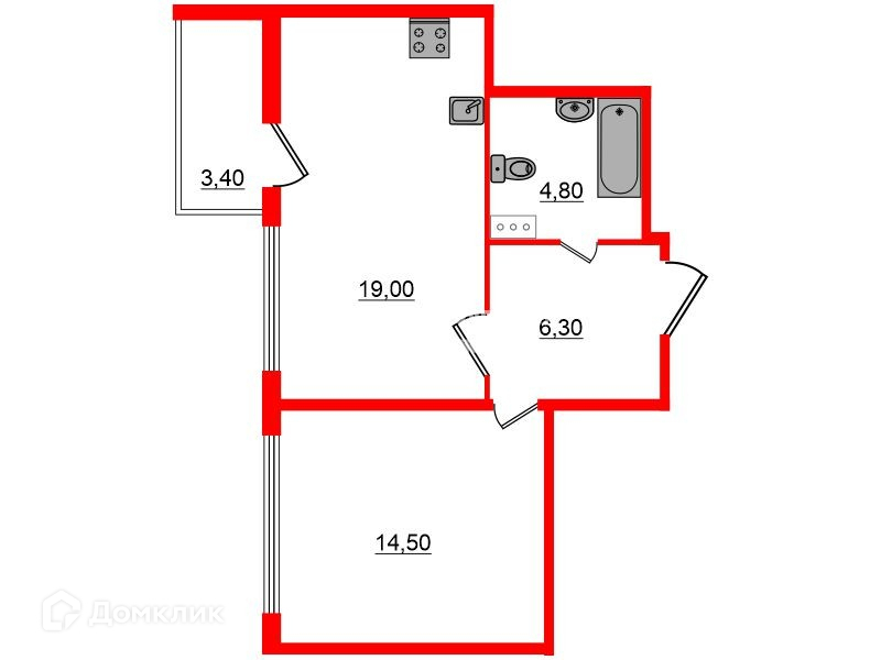 1-комнатная квартира, 44.6 м2, этаж 3 / 6, на продажу в Санкт-Петербурге, 12-я Красноармейская улица, 26