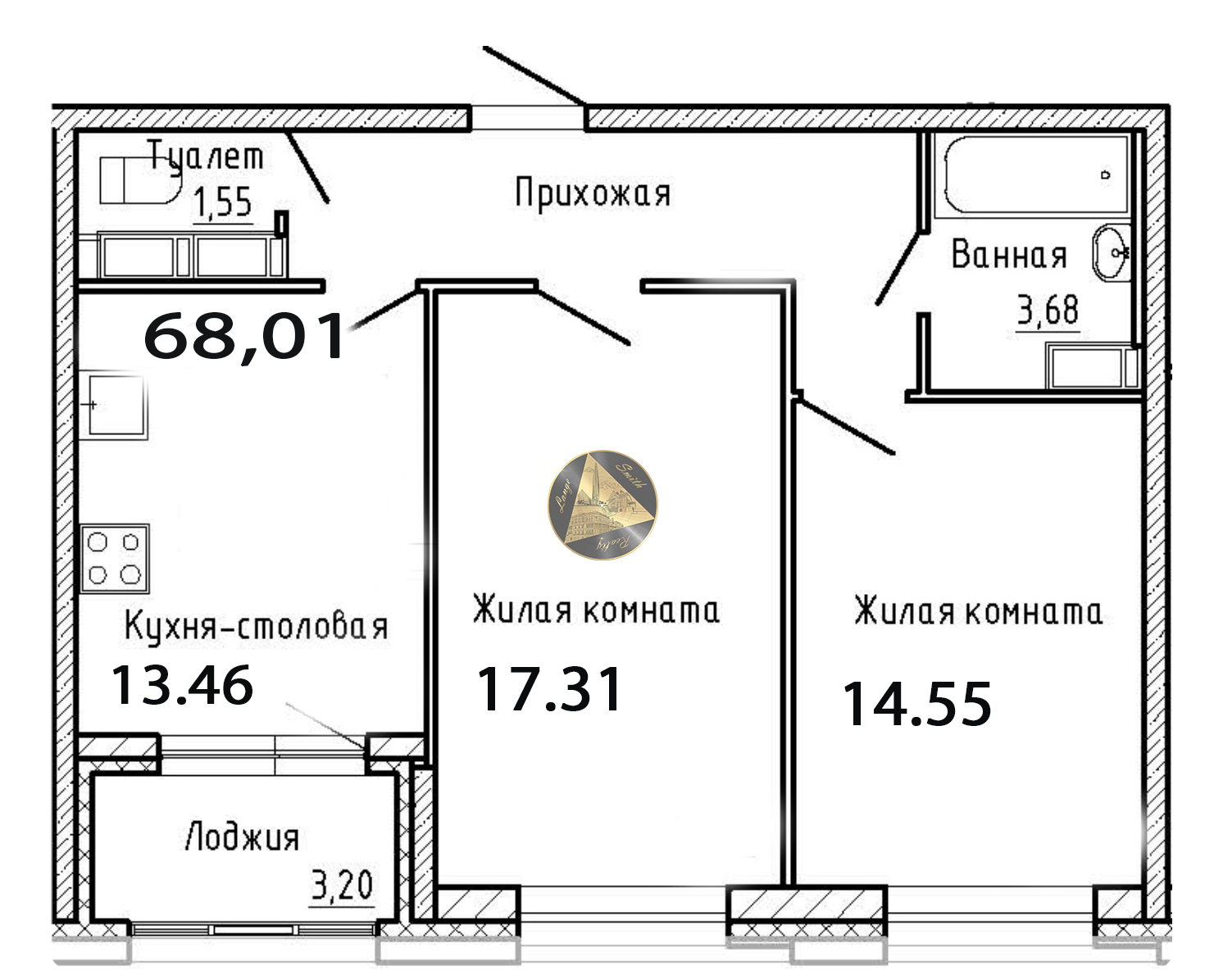 - Общая площадь квартиры 68,01 м2.